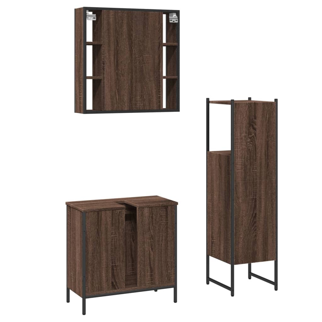 3-tlg. Badmöbel-Set Braun Eichen-Optik Holzwerkstoff