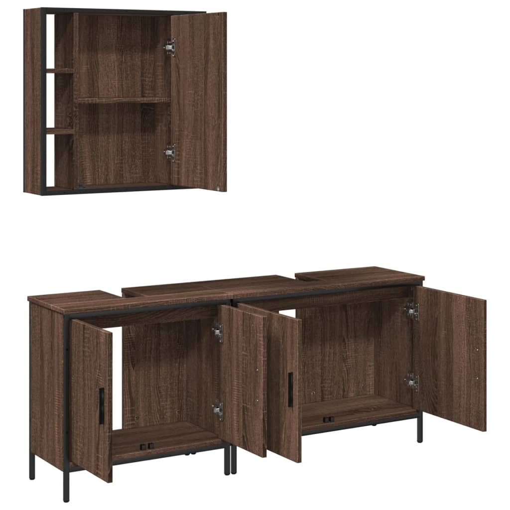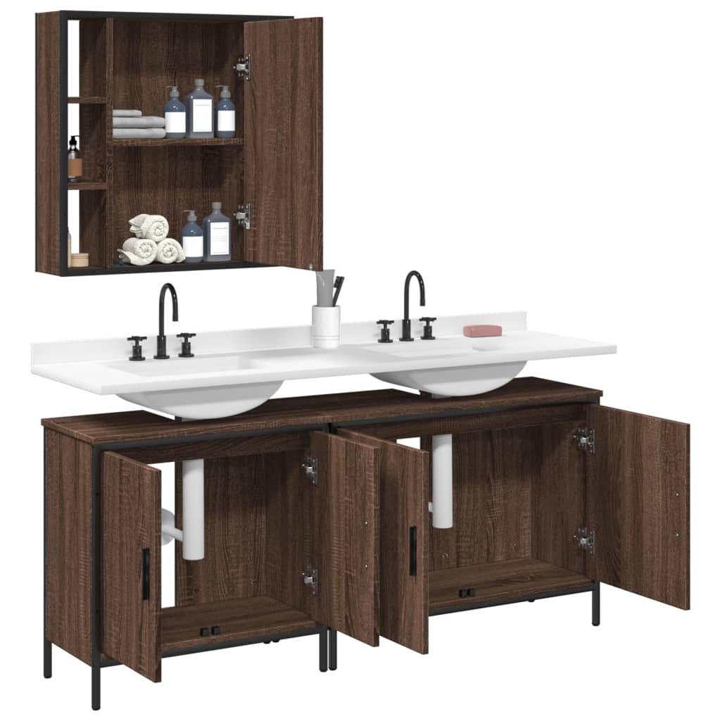 3-tlg. Badmöbel-Set Braun Eichen-Optik Holzwerkstoff