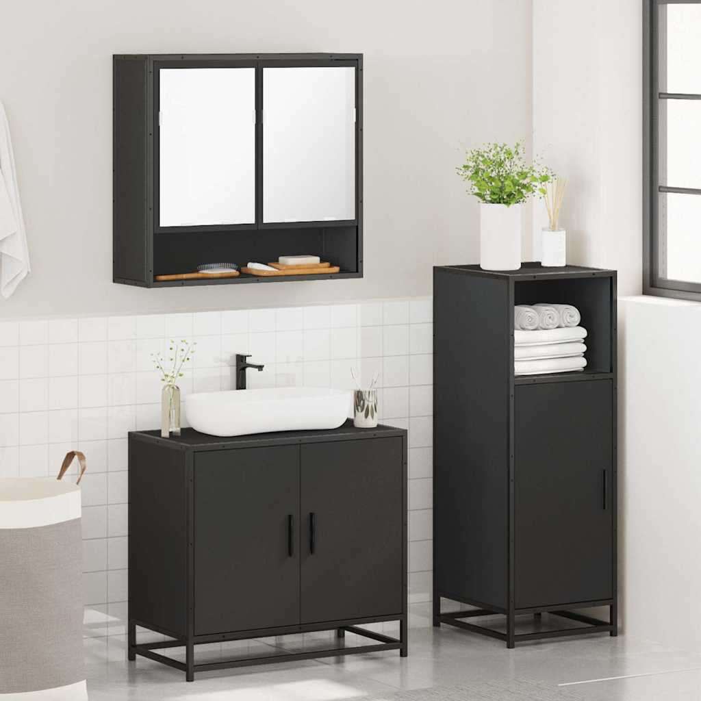3-tlg. Badmöbel-Set Schwarz Holzwerkstoff
