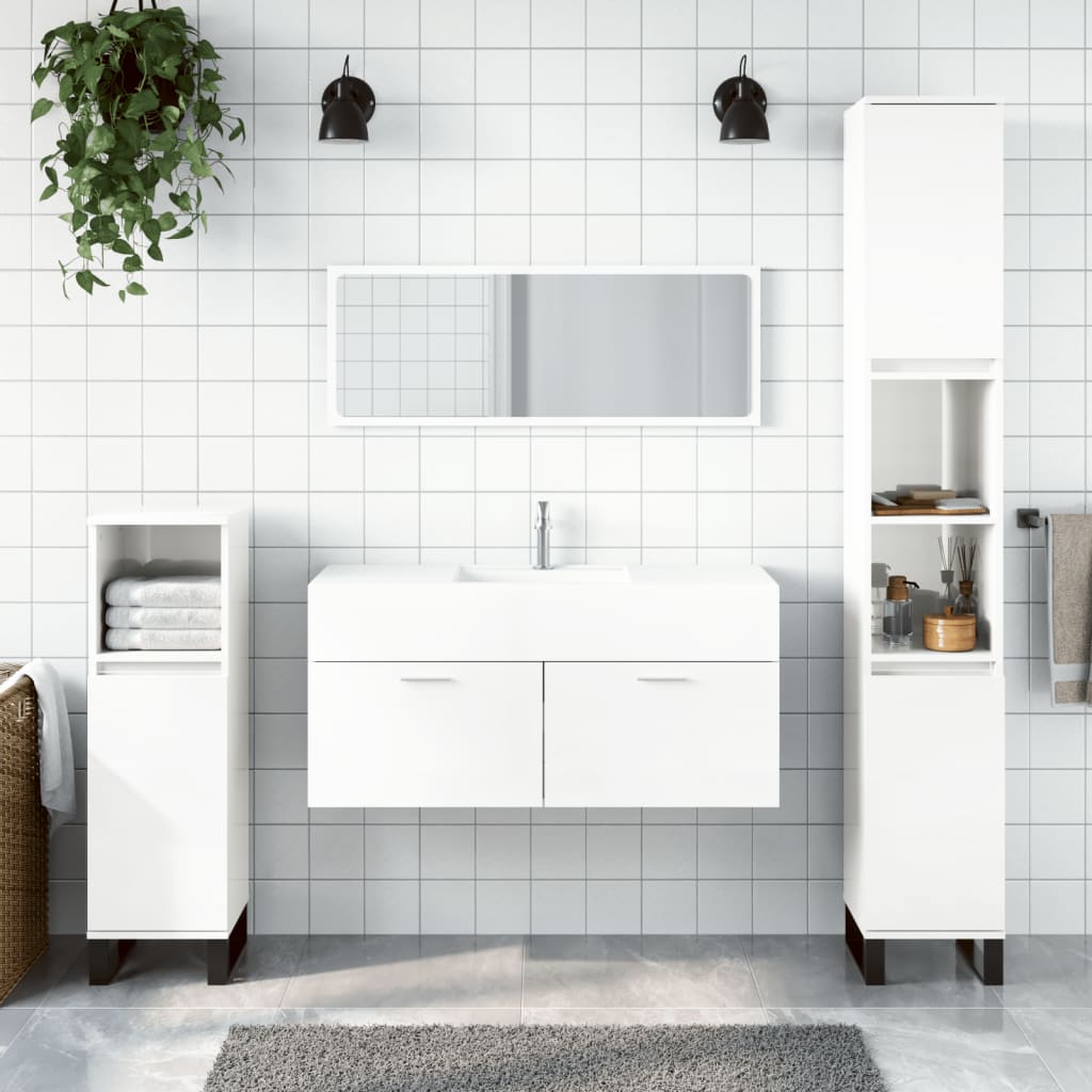 Badschrank mit Spiegel Hochglanz-Weiß Holzwerkstoff