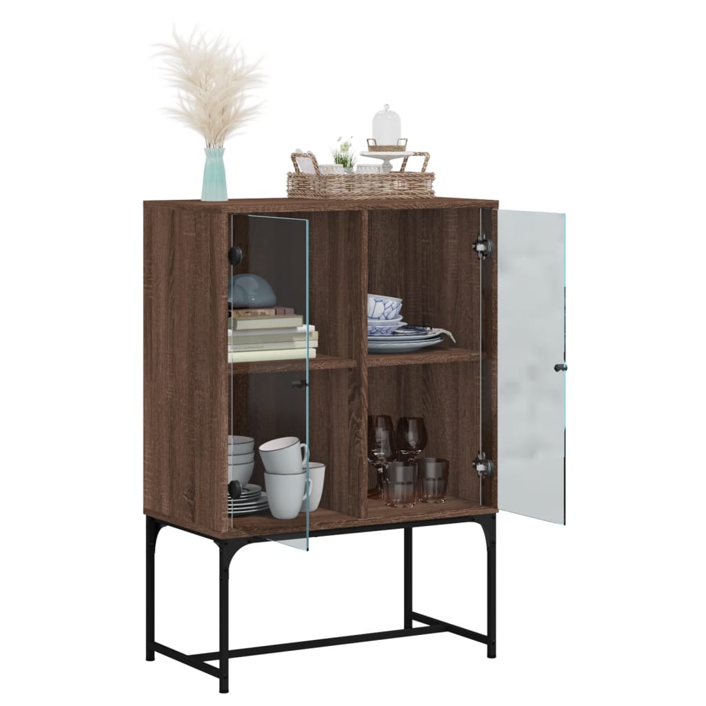 Beistellschrank mit Glastüren Braun Eichen-Optik 69x37x100 cm