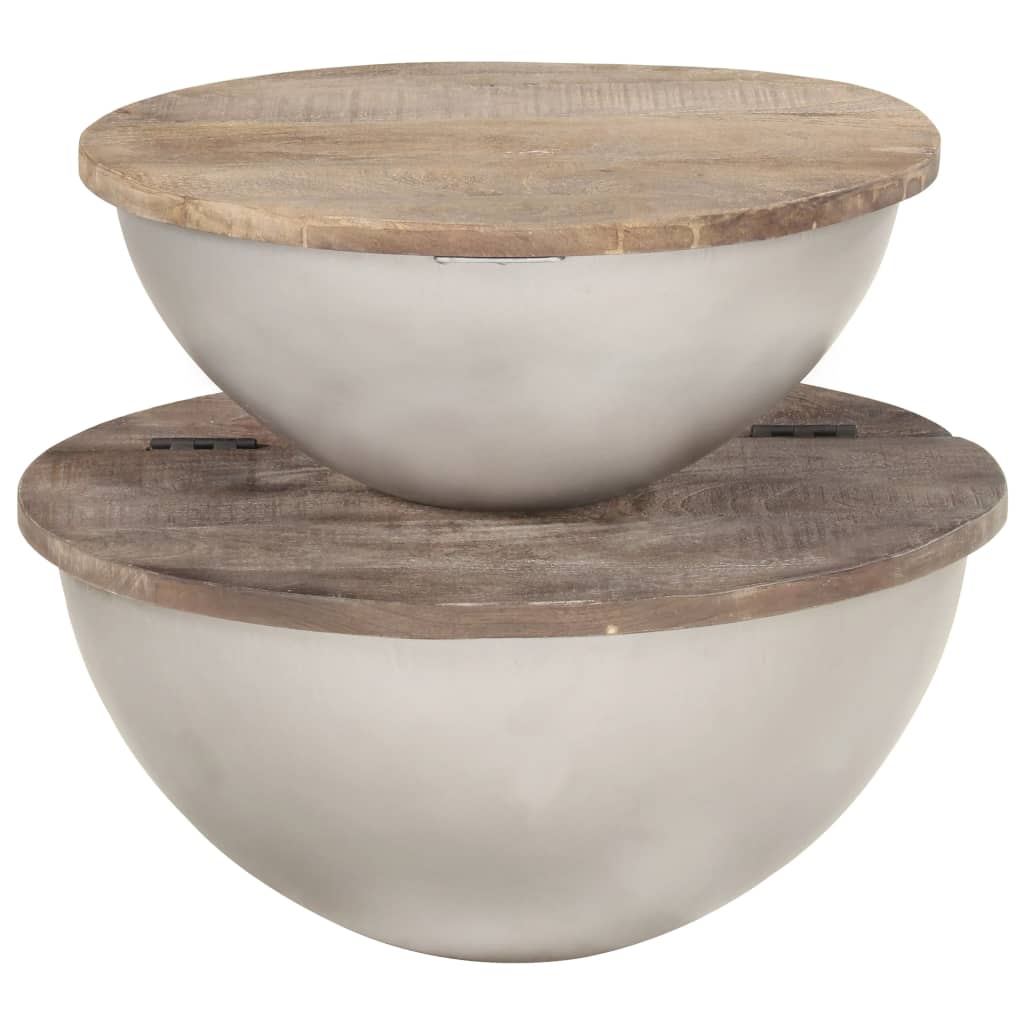 Dieses Couchtisch-Set mit seiner Schüsselform wird eine einzigartige Ergänzung für Ihr Zuhause darstellt! Die Tischplatte besteht aus tropischem Mangoholz, einem dichten und robusten Hartholz, das massiv, langlebig und schön ist. Hier können Sie Getränke, Dekorationsgegenstände, Bücher usw. abstellen. Die solide Stahlkonstruktion für die Schüsselform macht den Tisch stabil und strapazierfähig. Jeder Herstellungsschritt wird mit größter Sorgfalt ausgeführt, sei es Polieren oder Lackieren. Die Handwerkskunst trägt zum spektakulären Retro-Stil bei, sowie die schönen Holzmaserungen jedes Möbelstück zu einem Unikat machen. Die Lieferung umfasst 2 Couchtische in verschiedenen Größen. Wichtiger Hinweis: Die Tischfarben können von Stück zu Stück variieren, wodurch jeder unserer Couchtische ein Unikat ist. Die Lieferung erfolgt nach dem Zufallsprinzip.