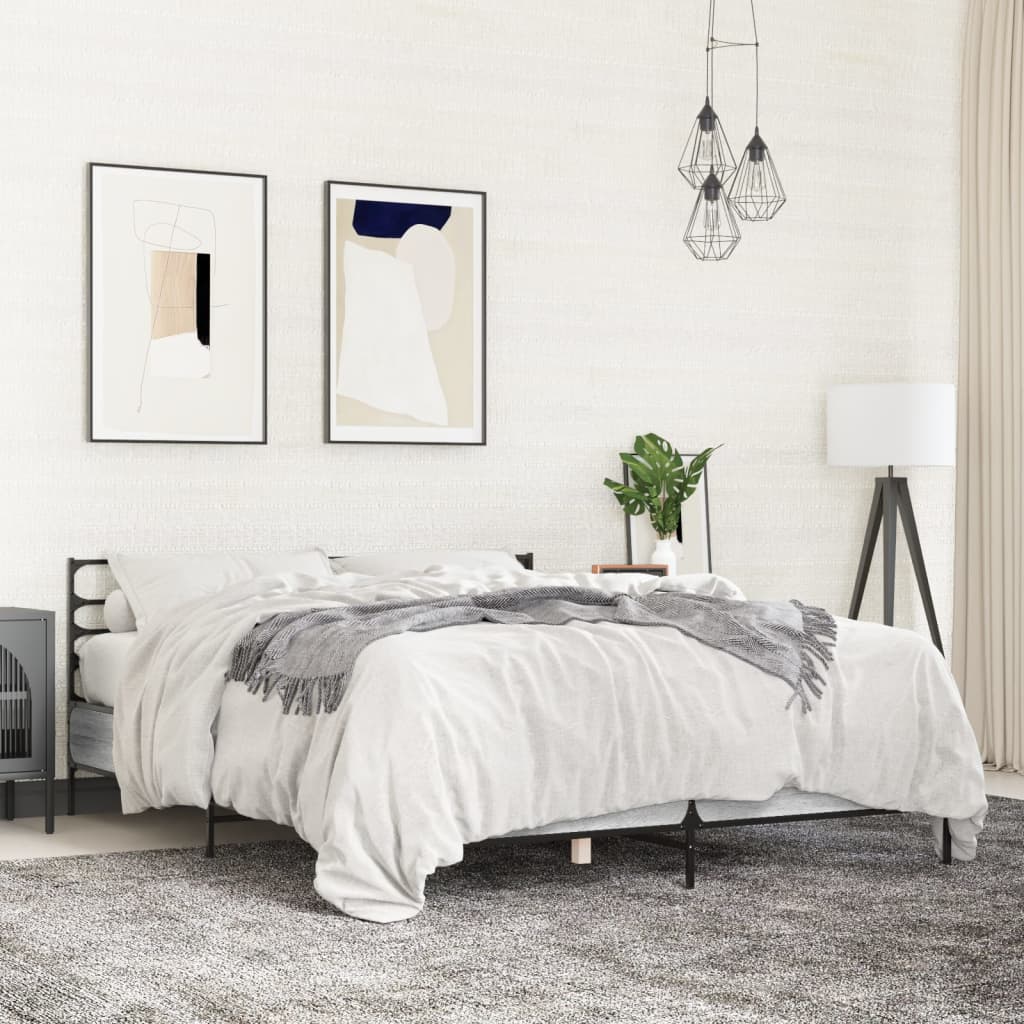 Bettgestell Grau Sonoma 140x190 cm Holzwerkstoff und Metall