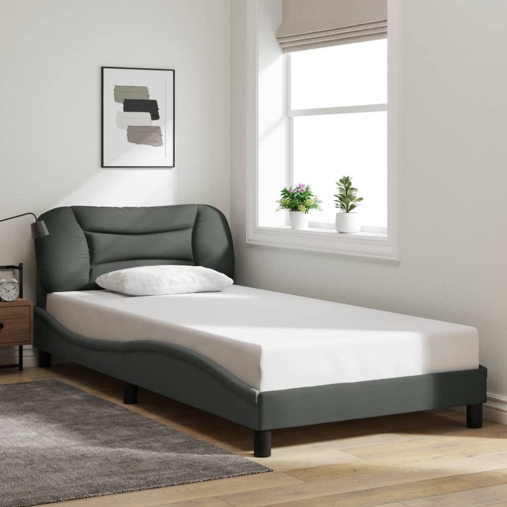 Bettgestell ohne Matratze Dunkelgrau 100x200 cm Stoff