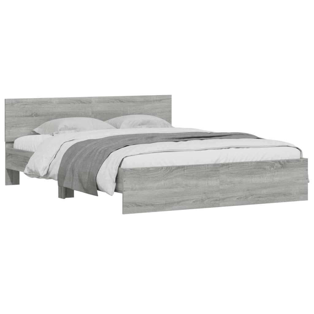 Bettgestell mit Kopfteil und LED-Beleuchtung Grau Sonoma
