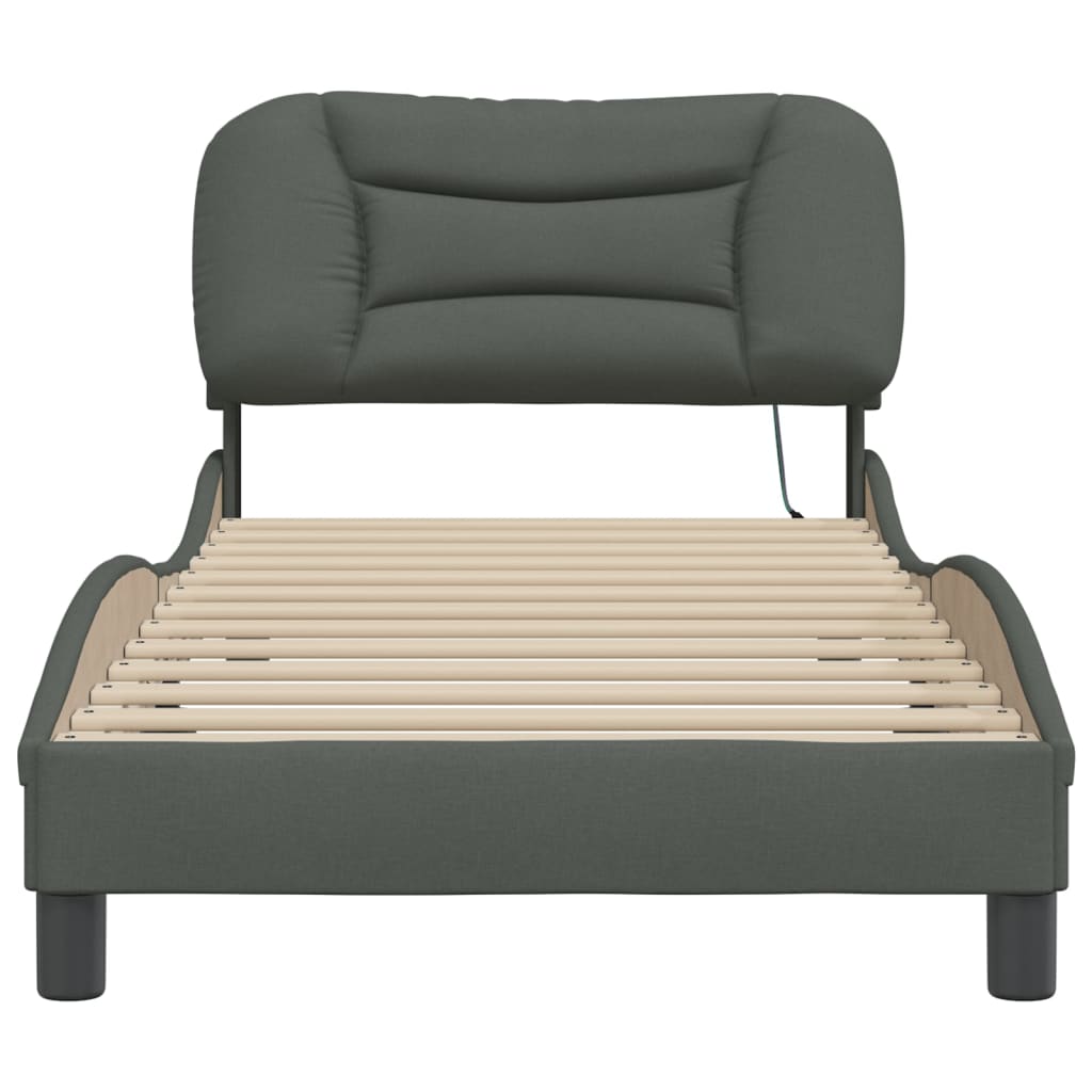 Bettgestell mit LED ohne Matratze Dunkelgrau 80x200 cm Stoff