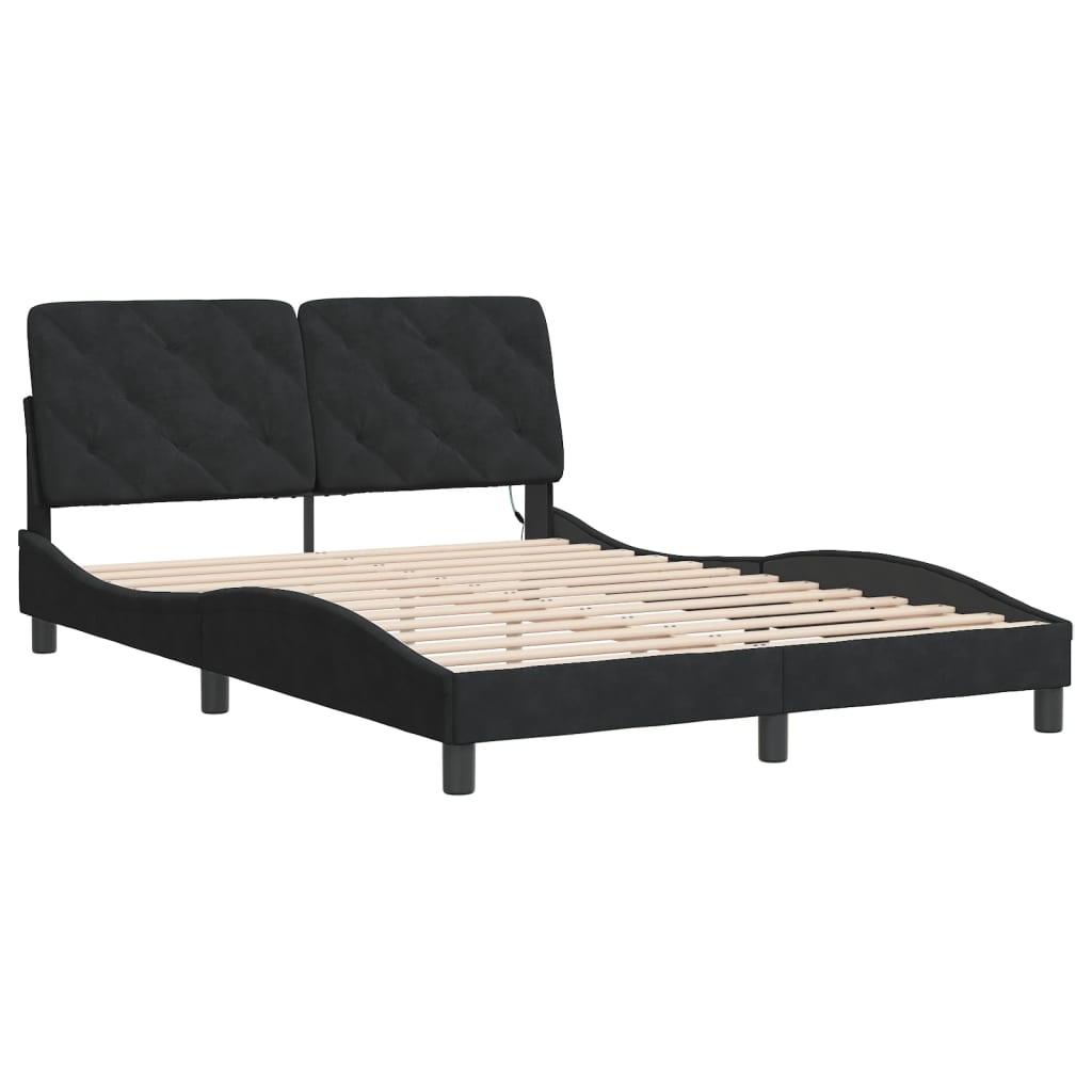 Bettgestell mit LED-Leuchten Schwarz 120x200 cm Samt