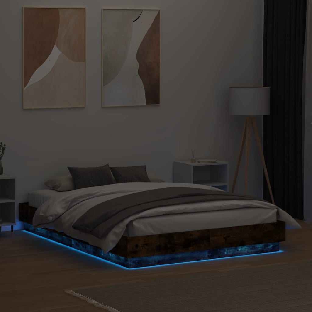Bettgestell mit LED Räuchereiche 120x190 cm