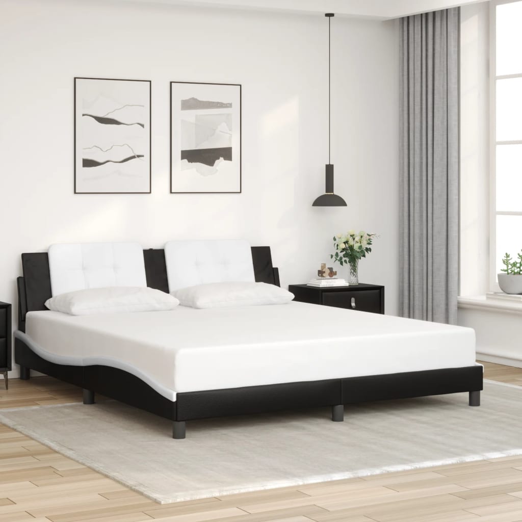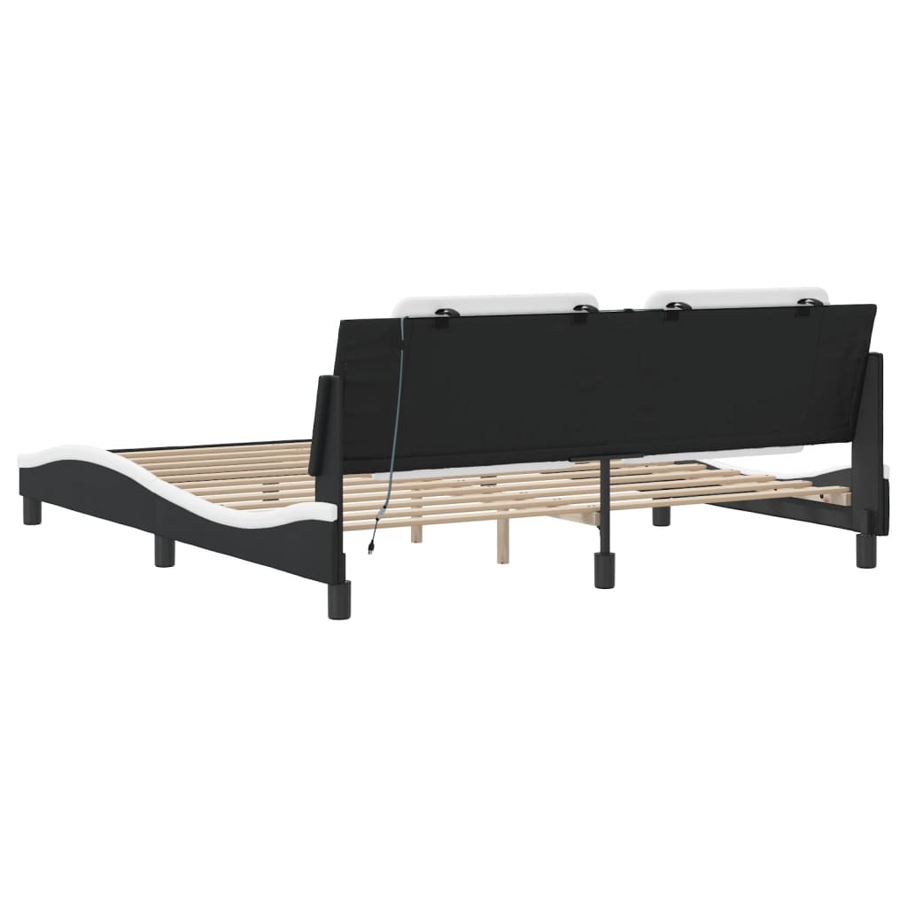Bettgestell mit LED Schwarz und Weiß 180x200 cm Kunstleder