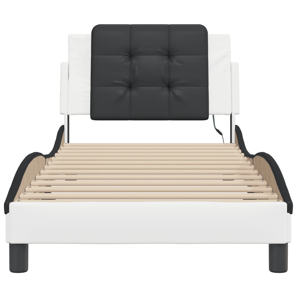 Bettgestell mit LED Weiß und Schwarz 100x200 cm Kunstleder