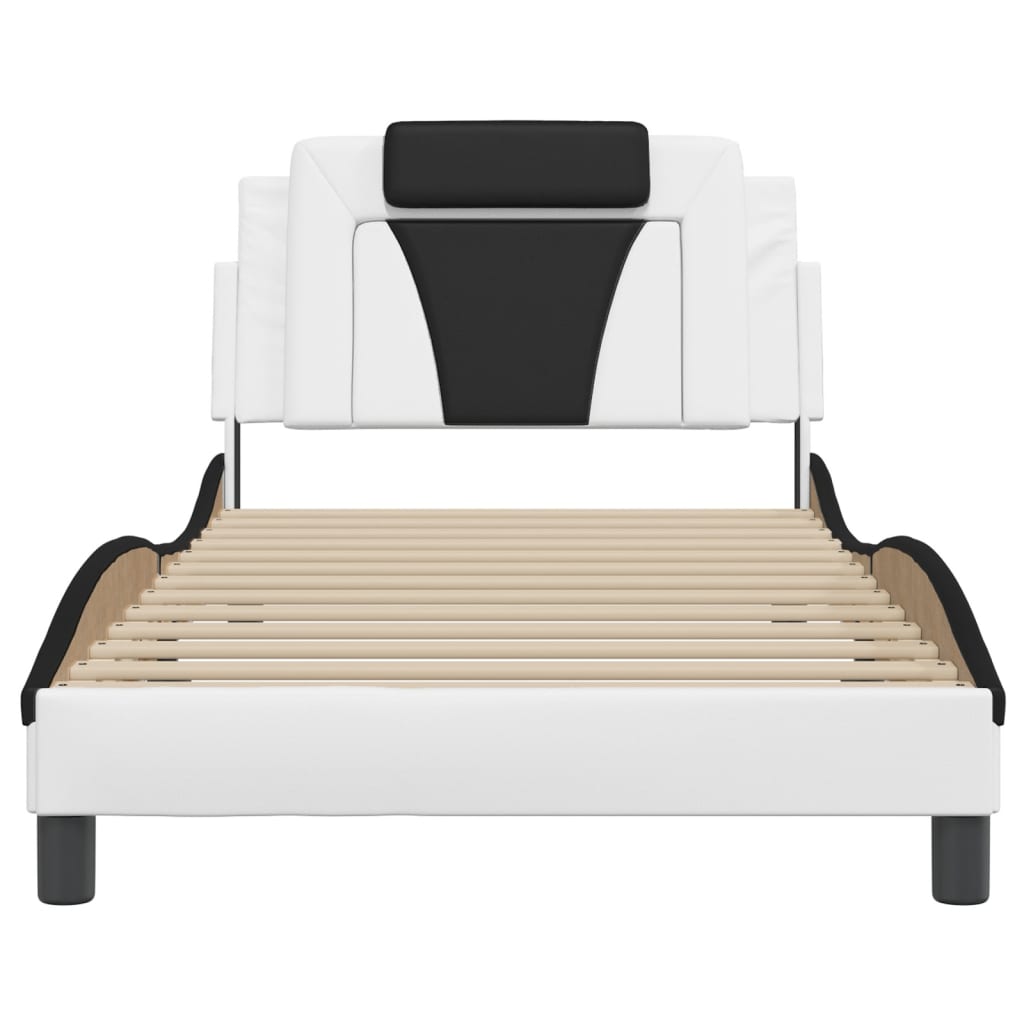 Bettgestell mit LED Weiß und Schwarz 100x200 cm Kunstleder