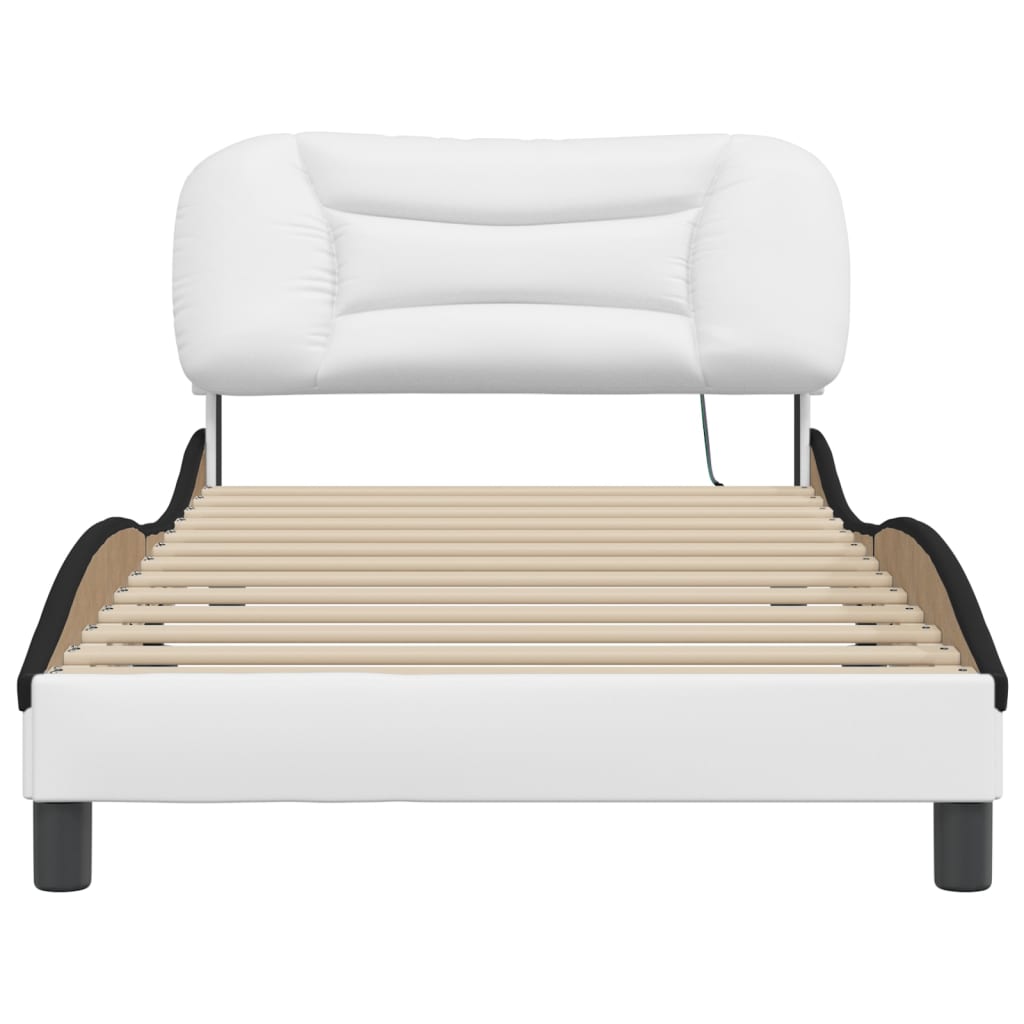 Bettgestell mit LED Weiß und Schwarz 100x200 cm Kunstleder