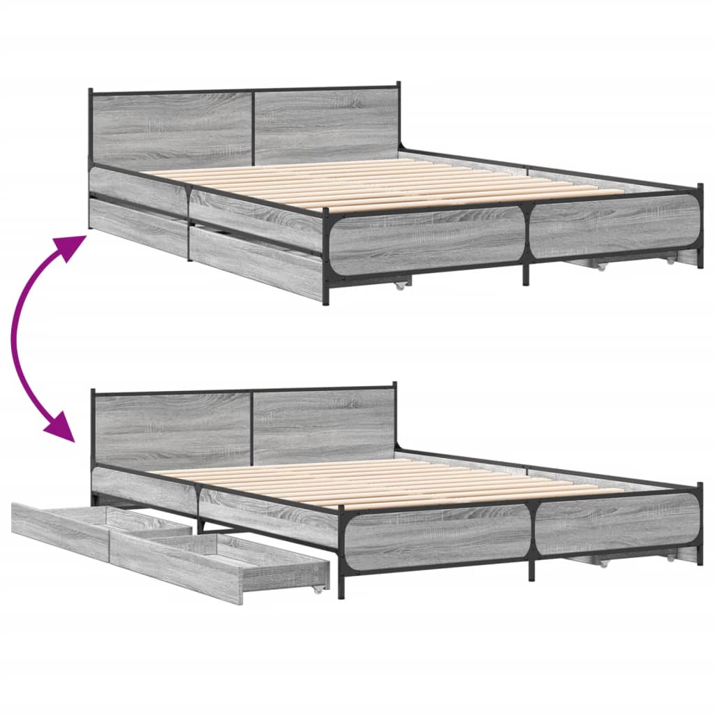 Bettgestell mit Schubladen Grau Sonoma 140x200 cm Holzwerkstoff