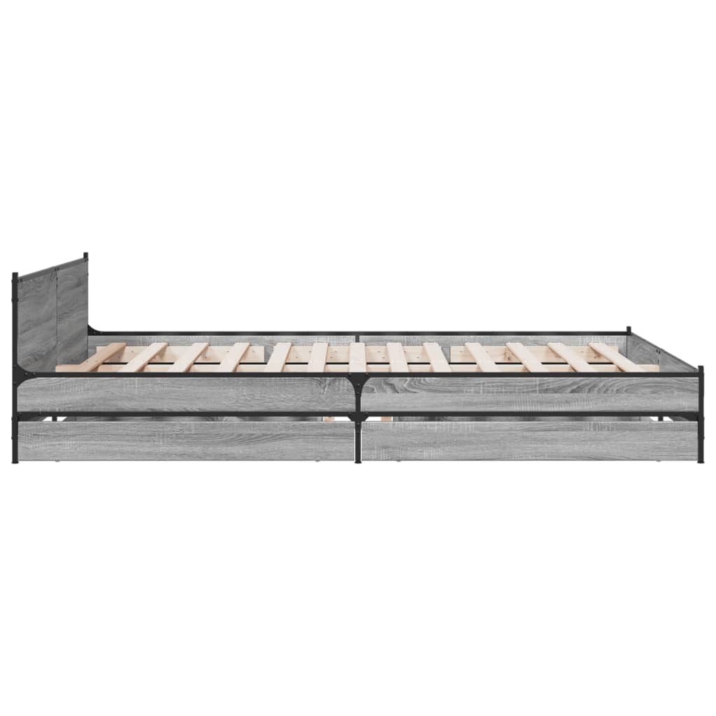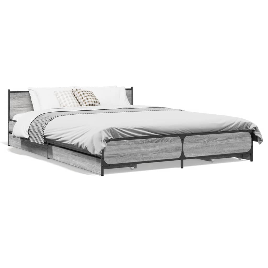 Bettgestell mit Schubladen Grau Sonoma 150x200 cm Holzwerkstoff