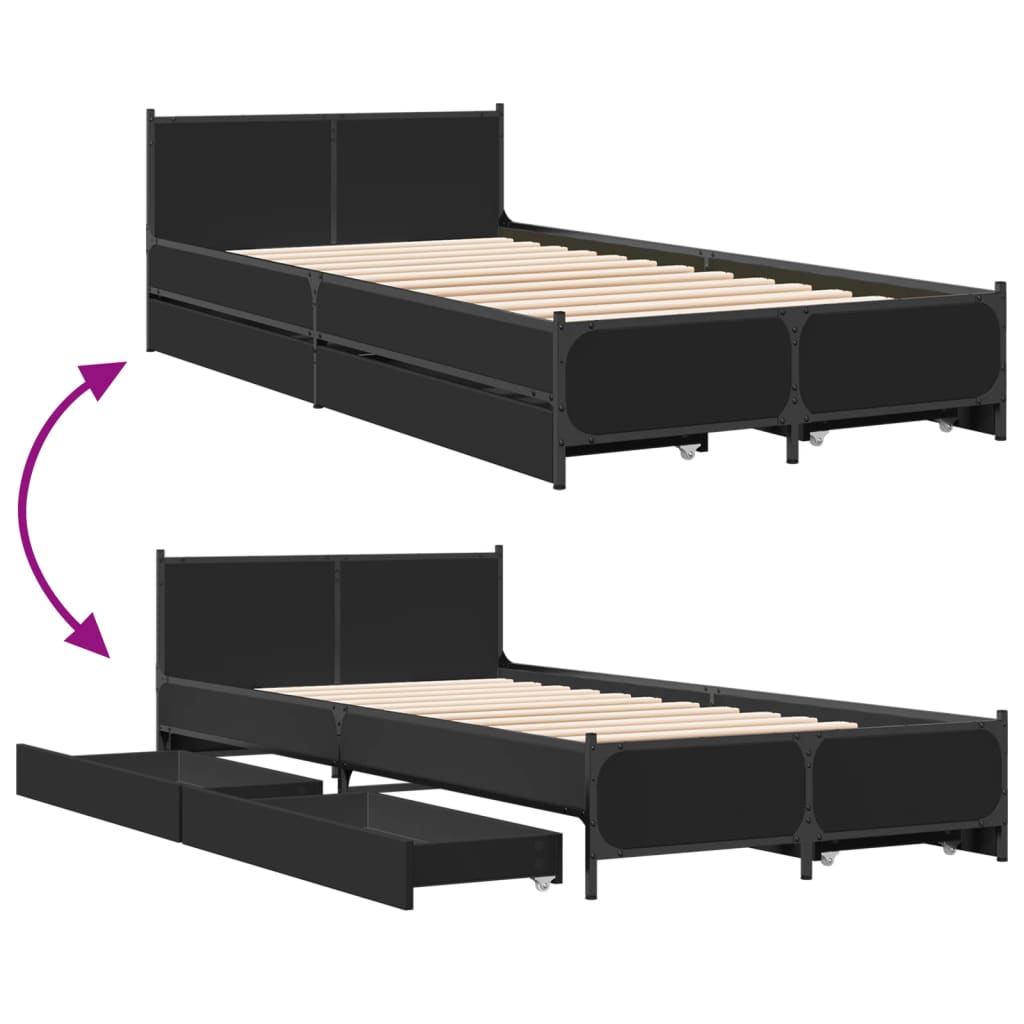 Bettgestell mit Schubladen Schwarz 90x190 cm Holzwerkstoff