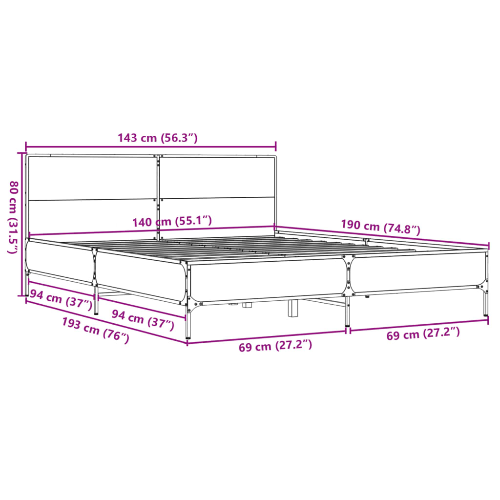 Bettgestell Räuchereiche 140x190 cm Holzwerkstoff und Metall