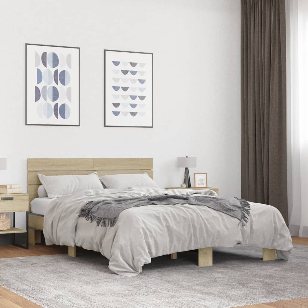 Bettgestell Sonoma-Eiche 140x190 cm Holzwerkstoff und Metall