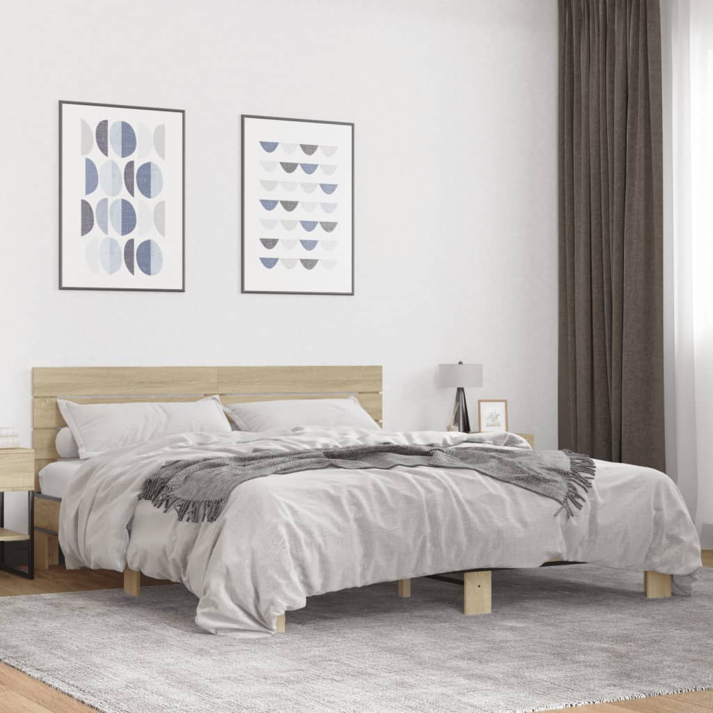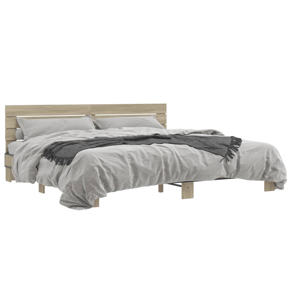 Bettgestell Sonoma-Eiche 200x200 cm Holzwerkstoff und Metall