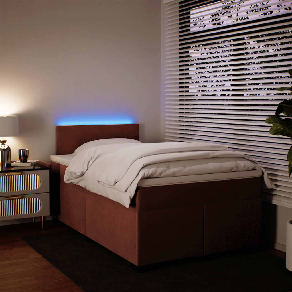 Mit diesem Boxspringbett genießt du eine erholsame Nachtruhe! Es sorgt für maximale Entspannung und einen angenehmen Schlaf. Weiches und komfortables Material: Der Samtstoff hat eine weiche und sanfte Oberfläche, die sich angenehm auf der Haut anfühlt und höchsten Komfort bietet.Taschenfederkernmatratze: Diese Matratze hat einzelne Taschenfedern, die unabhängig voneinander arbeiten. Somit bietet sie dir optimalen Halt, indem sie auf Druckstellen in jedem Bereich unabhängig reagieren. Diese Konstruktion verhindert das "Zusammenrollen" und reduziert die Bewegungsübertragung im Vergleich zu alten Federkernmatratzen. Jede Taschenfeder stützt die Körper-Druckstellen individuell.LED-Beleuchtung für ein angenehmes Ambiente: Dieses Bett verfügt über LED-Leuchten, die einfach eingestellt werden können, um eine persönliche Lichtshow zu kreieren. Du kannst die Modi, Farben und Helligkeit anpassen, um das Ambiente deines Innenraums zu verbessern.Komfortable Matratzenauflage: Die Auflage verbessert den Halt und den Komfort mit ihrer weichen, atmungsaktiven Oberfläche und verlängert gleichzeitig die Lebensdauer deiner Matratze. Der abnehmbare Bezug ermöglicht ein einfaches Waschen, was die Pflege der Matratze zum Kinderspiel macht. Gut zu wissen:Das Produkt verfügt über einen USB-Anschluss, für den eine zertifizierte 5V-USB-Stromquelle erforderlich ist (nicht im Lieferumfang enthalten).Aus hygienischen Gründen kann die Matratze nicht zurückgegeben werden, wenn die Verpackung entfernt oder geöffnet wurde.Nur der Teil mit dem Symbol kann geschnitten werden und nur der Teil mit dem USB funktioniert auch weiterhin.