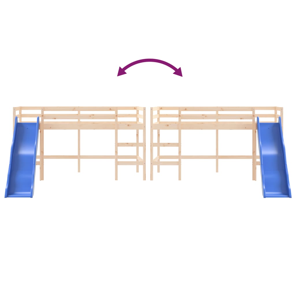 Dieses Hochbett für Kinder wurde aus massivem Kiefernholz gefertigt und ist sowohl zur Unterhaltung als auch zur Raumoptimierung konzipiert worden. Stabile Holzkonstruktion: Dieses Etagenbett ist aus Kiefern-Massivholz gefertigt und sorgt für Stabilität und Haltbarkeit. Kiefernholz hat eine gerade Maserung und die Aststellen verleihen dem Holz seine charakteristische, rustikale Optik. Volle Raumausnutzung: Dieses Einzel-Hochbett ist 87 cm über dem Boden angebracht und bietet darunter ausreichend Platz für allerlei Sachen oder spielerische Aktivitäten. Dieser Bereich kann zum Stapeln von Aufbewahrungsboxen, zum Aufbewahren großer Spielsachen oder sogar zum Aufstellen eines Kindersofas genutzt werden. Darüber hinaus kann dein Kind den Raum unter dem Kinderbett als geheimen Ort nutzen für fantasievolles Spielen nutzen. Sicherheitsgeländer: Das Hochbett für Kinder ist an allen 4 Seiten mit Rausfallschutz ausgestattet, sodass Kinder nicht herausfallen können. Praktische Leiter und Rutsche: Dieses Hochbett für Kinder verfügt über eine lustige Rutsche, die Freude bereitet und das Zimmer in einen Indoor-Spielplatz verwandelt. Die Kombination aus Kletterleiter und Rutsche macht das Schlafengehen lustiger und interessanter. Gut zu wissen:Bei diesem Bett ist keine Matratze im Lieferumfang enthalten. Wir bieten jedoch eine große Auswahl an Matratzen an. Du kannst in unserem Shop nach einer passenden Matratze suchen. Achtung:Um ein Umkippen zu vermeiden, sollte dieses Produkt mit der mitgelieferten Wandhalterung gesichert werden.