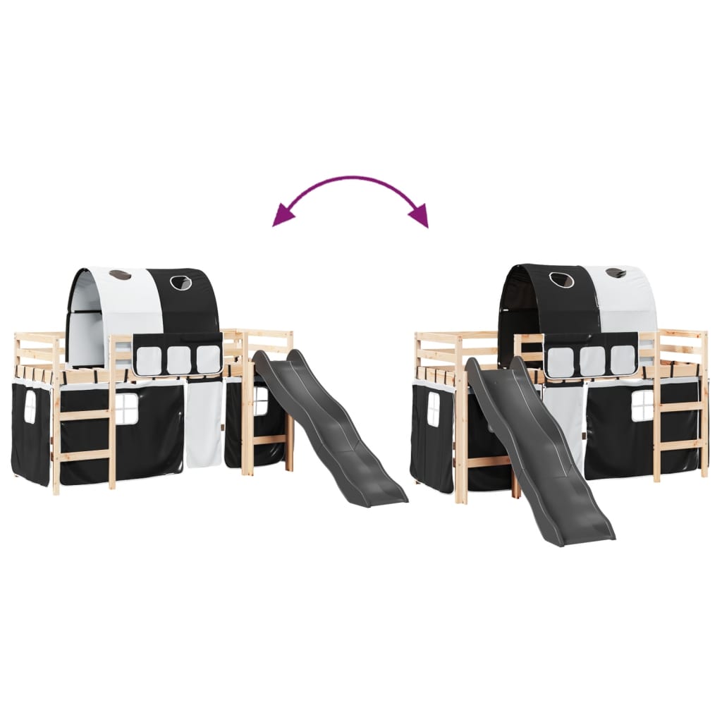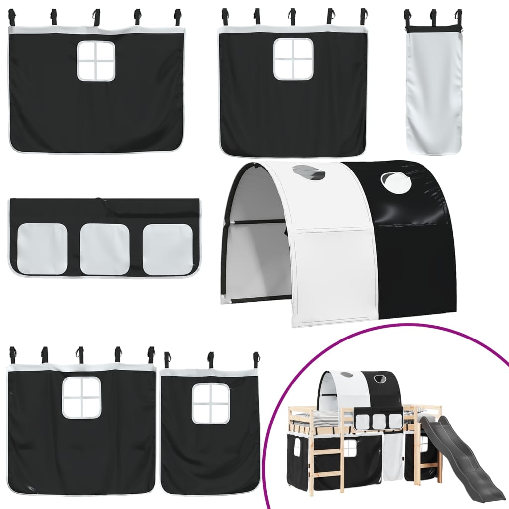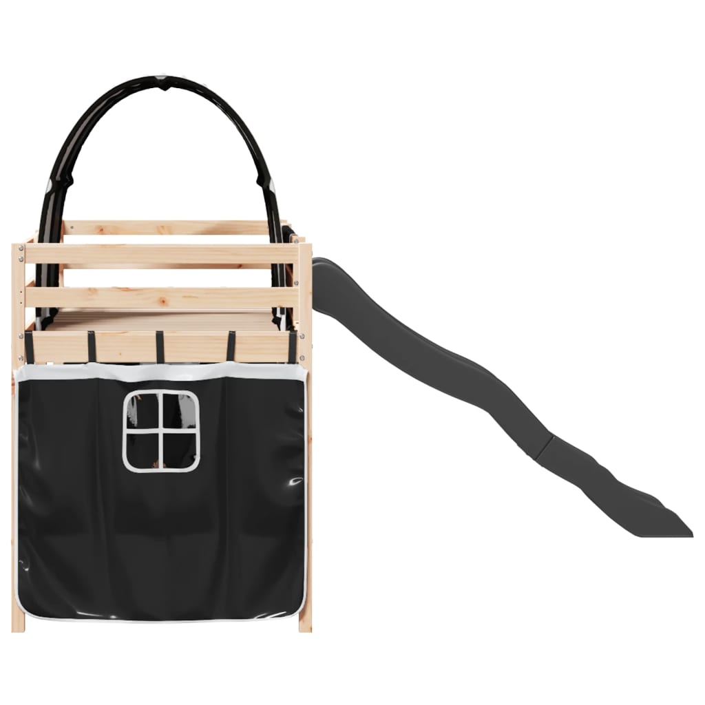 Kinderhochbett mit Tunnel Weiß & Schwarz 80x200 cm Kiefernholz