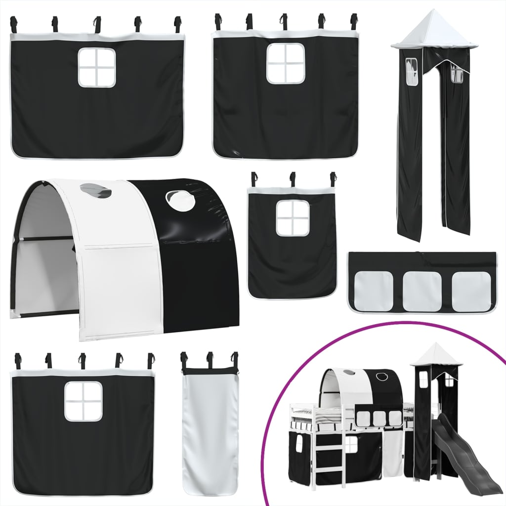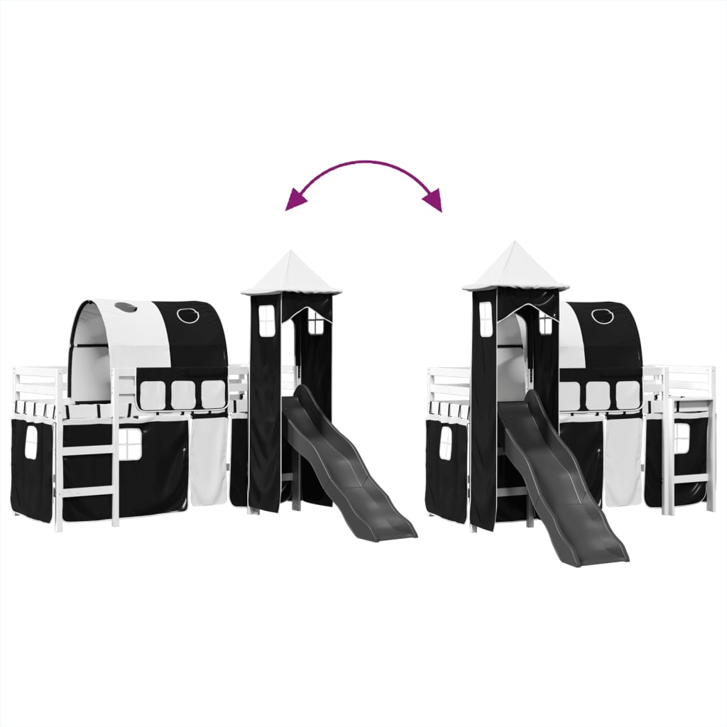 Kinderhochbett mit Turm Weiß & Schwarz 80x200 cm Kiefernholz