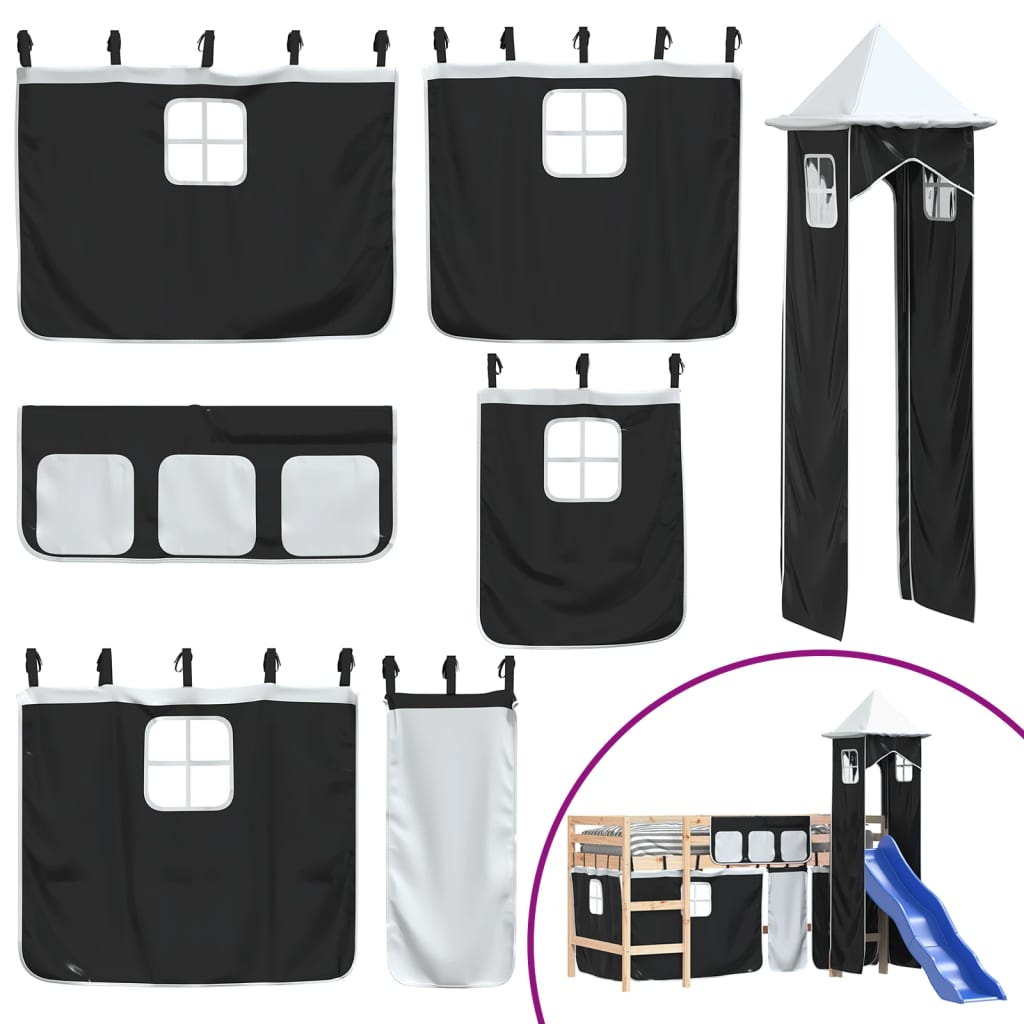 Kinderhochbett mit Turm Weiß & Schwarz 80x200 cm Kiefernholz