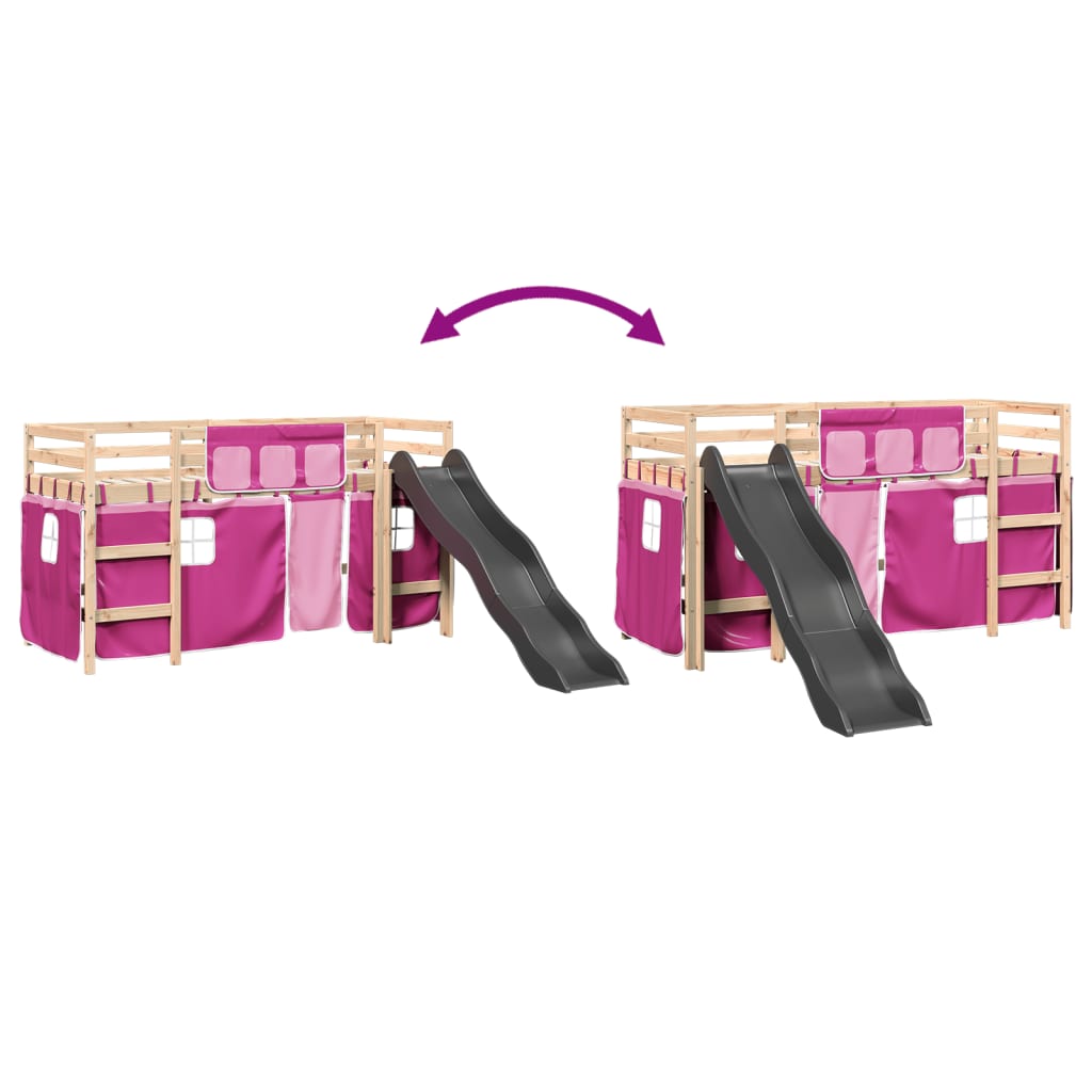 Kinderhochbett mit Vorhängen Rosa 80x200 cm Massivholz Kiefer