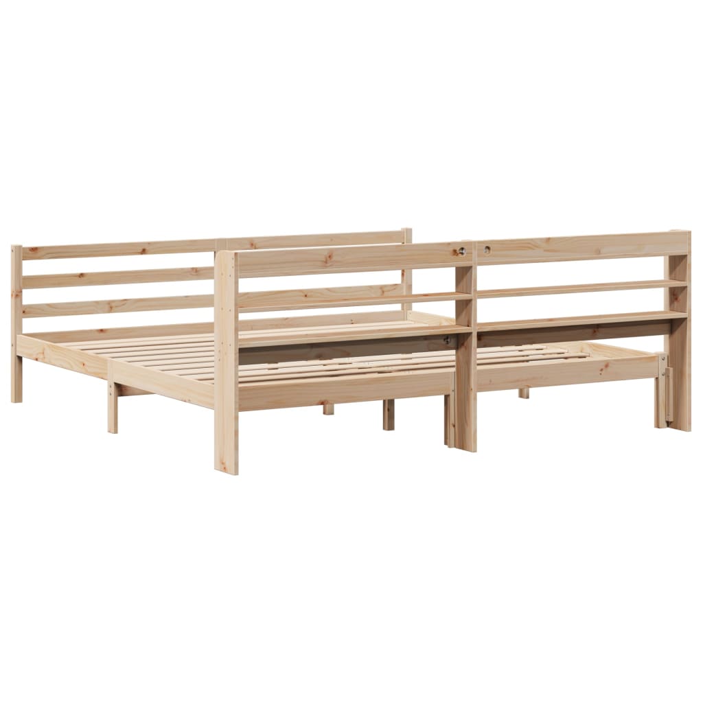 Genießen Sie einen erholsamen Schlaf in diesem Holzbett! Es wird eine praktische und dekorative Ergänzung zu Ihrem Interieur sein. Massives Kiefernholz: Massives Kiefernholz ist ein wunderschönes Naturmaterial. Kiefernholz weist eine gerade Maserung auf und die Aststellen verleihen dem Material seine charakteristische, rustikale Optik.Praktische Latten: Die Latten sorgen für eine gute Gewichtsverteilung sowie eine gute Unterstützung der Matratze, während ihre Atmungsaktivität nicht beeinträchtigt wird.Reichlich Stauraum: Das elegante Kopfteil des Bettes verfügt über zwei praktische Ablagen, die reichlich Stauraum bieten, um wichtige Sachen nachts griffbereit zu halten.Freistehend: Das freistehende Kopfteil lässt sich mühelos anbringen und bei Bedarf umstellen, ohne eine Befestigung an der Wand zu erfordern. Gut zu wissen: Bei diesem Bett ist keine Matratze im Lieferumfang enthalten. Wir bieten jedoch eine große Auswahl an Matratzen an. Du kannst in unserem Shop nach einer passenden Matratze suchen.
