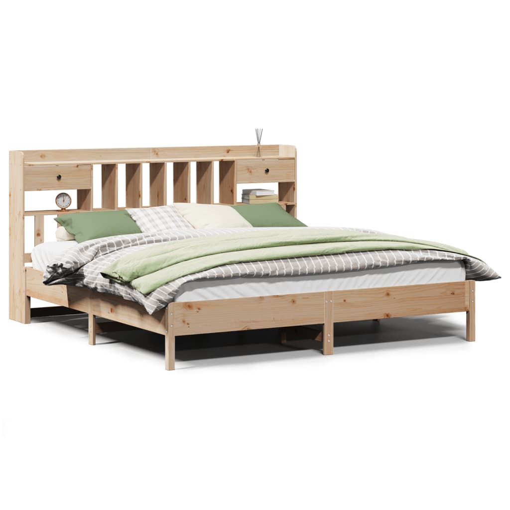 In diesem Bett mit Bücherregal schläft man besser und erholsamer! Das Massivholzbett ist eine willkommene Ergänzung für jedes Schlafzimmer. Stabiles und langlebiges Gestell: Massives Kiefernholz ist für seine Stärke und Haltbarkeit bekannt. Seine gerade Maserung und die charakteristischen Aststellen tragen zu seinem rustikalen Charme bei.Lattenrost für optimale Unterstützung: Der Bettrahmen ist mit einem Lattenrost ausgestattet, der deine Matratze stützt und atmungsaktiv hält.Viel Stauraum: Dieses Regal-Kopfteil bietet reichlich Stauraum, um Bücher, Dekoartikel und andere Gegenstände griffbereit aufzubewahren und auf diese Weise für Ordnung im Schlafzimmer zu sorgen.Platzsparend: Dieses Kopfteil bietet eine platzsparende Alternative zu üblichen Nachttischen. Es schafft zusätzlichen Stauraum im Schlafzimmer und ist eine ideale Wahl für kleine oder begrenzte Räume. Gut zu wissen:Bei diesem Bett ist keine Matratze im Lieferumfang enthalten. Wir bieten jedoch eine große Auswahl an Matratzen an. Du kannst in unserem Shop nach einer passenden Matratze suchen.