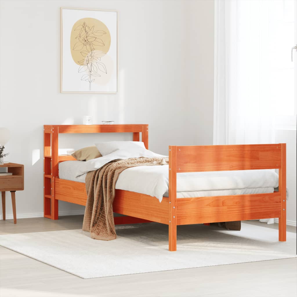 Massivholzbett ohne Matratze Wachsbraun 90x200 Kiefernholz