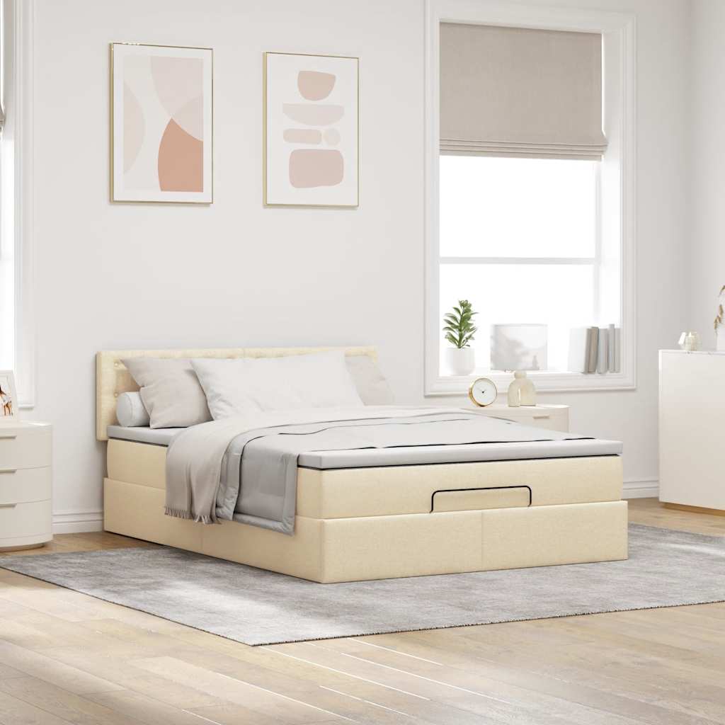 Ottoman-Bett mit Matratze Creme 140x200 cm Stoff