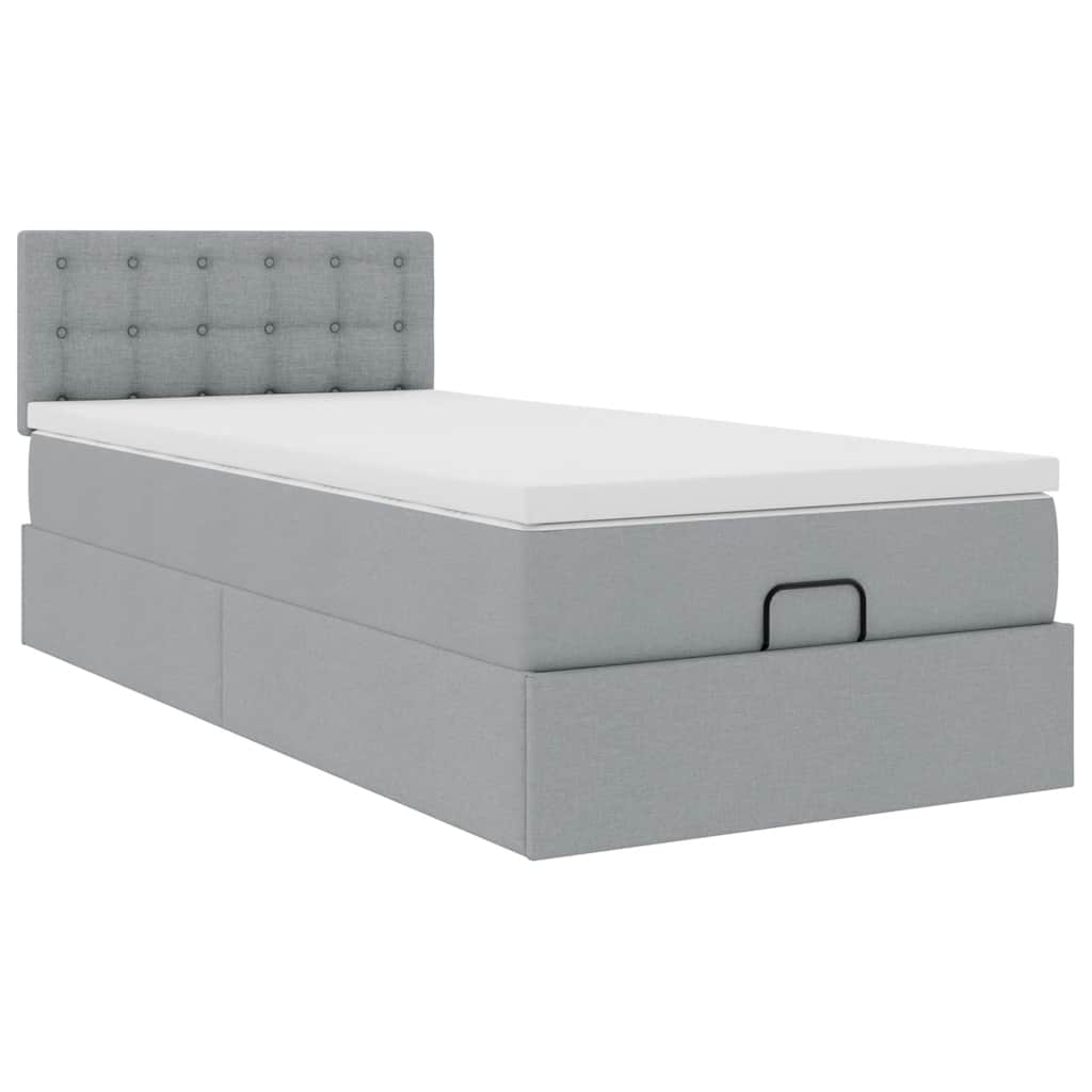 Ottoman-Bett mit Matratze Hellgrau 90x190 cm Stoff