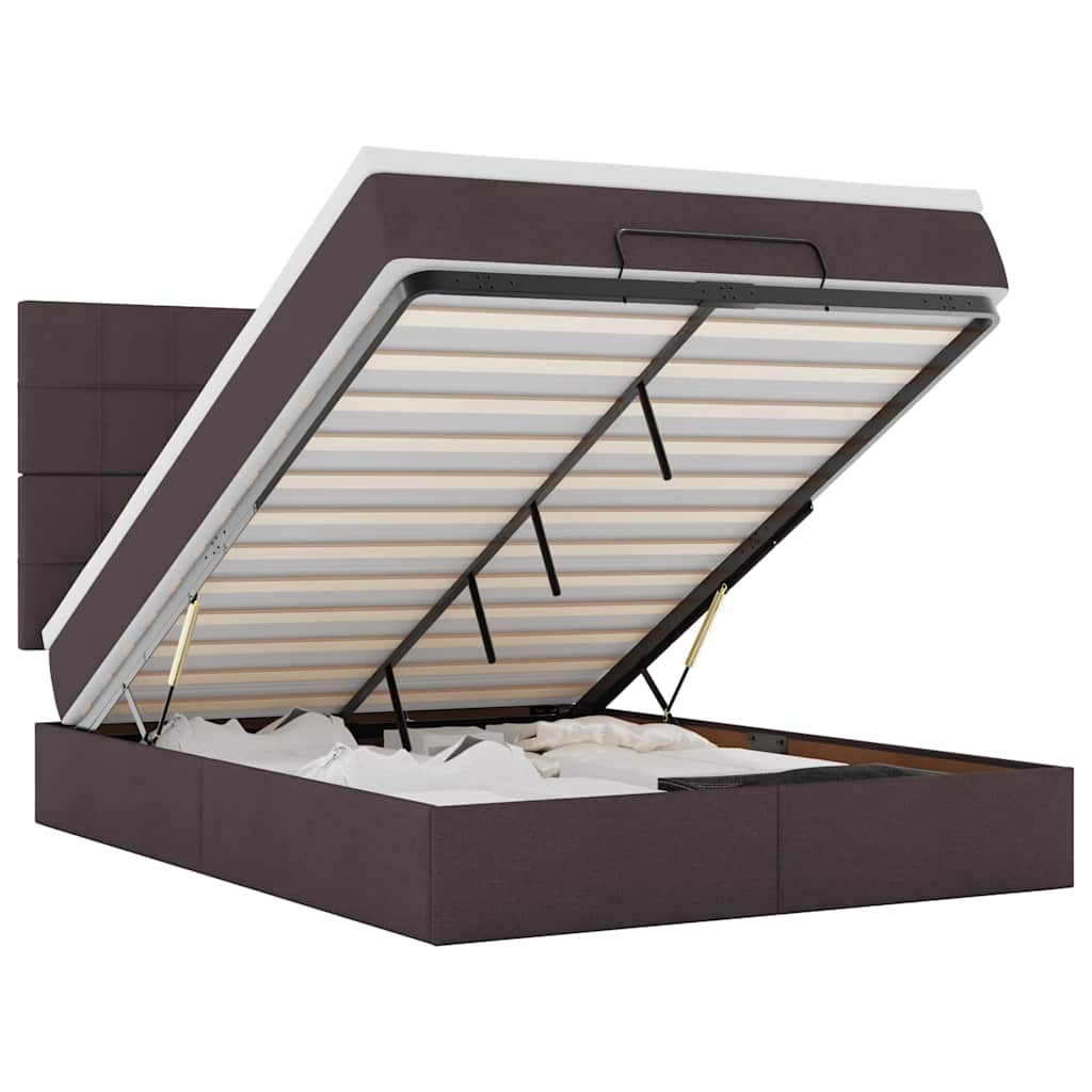 Ottoman-Bett mit Matratze & LEDs Dunkelbraun 140x200 cm Stoff
