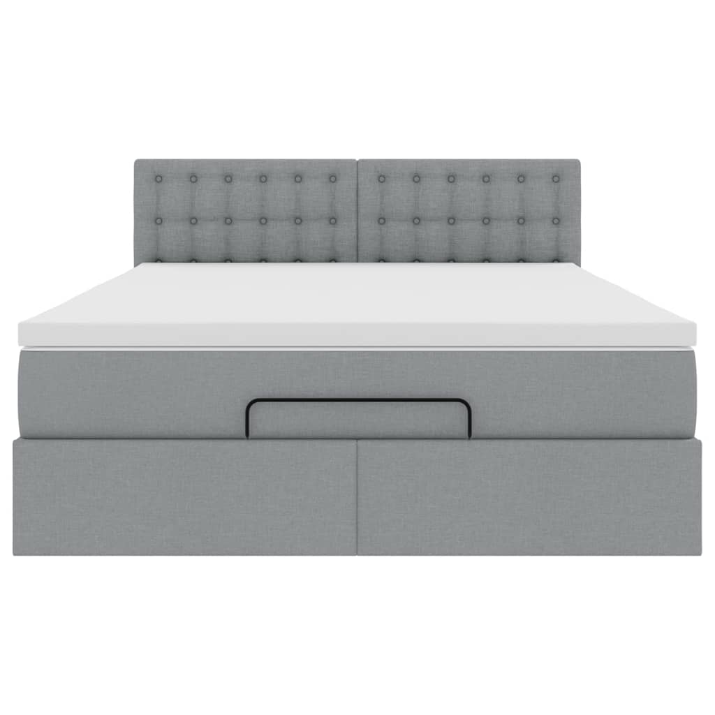 Ottoman-Bett mit Matratze & LEDs Hellgrau 140x200 cm Stoff