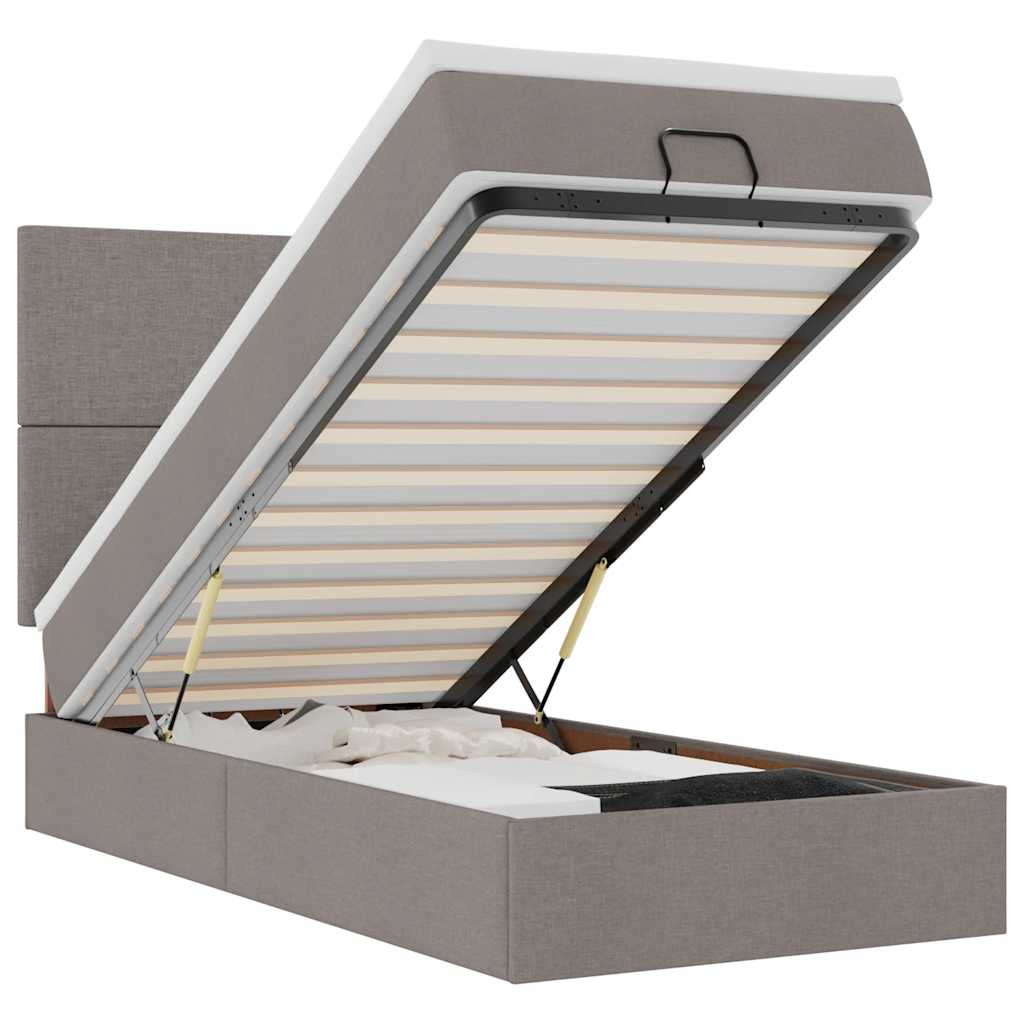 Ottoman-Bett mit Matratze Taupe 100x200 cm Stoff