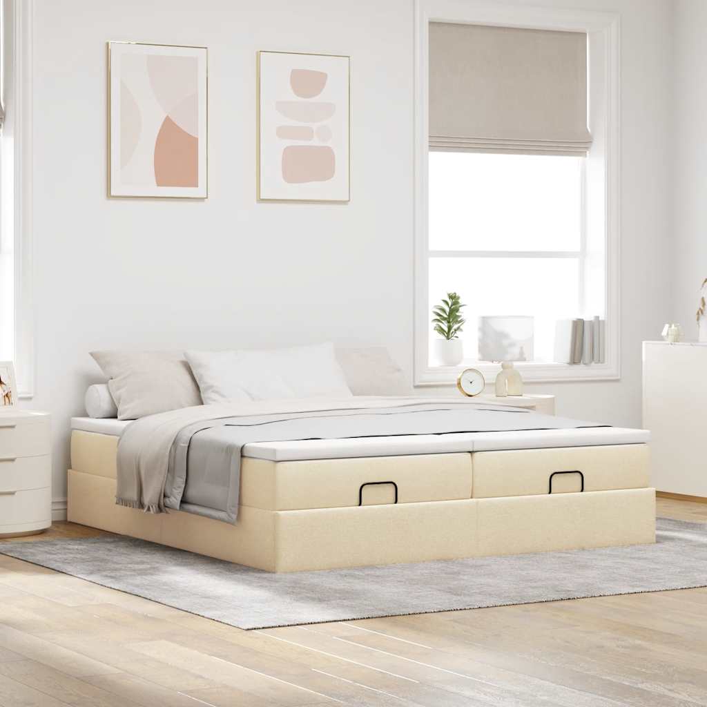 Ottoman-Bett mit Matratzen Creme 200x200 cm Stoff