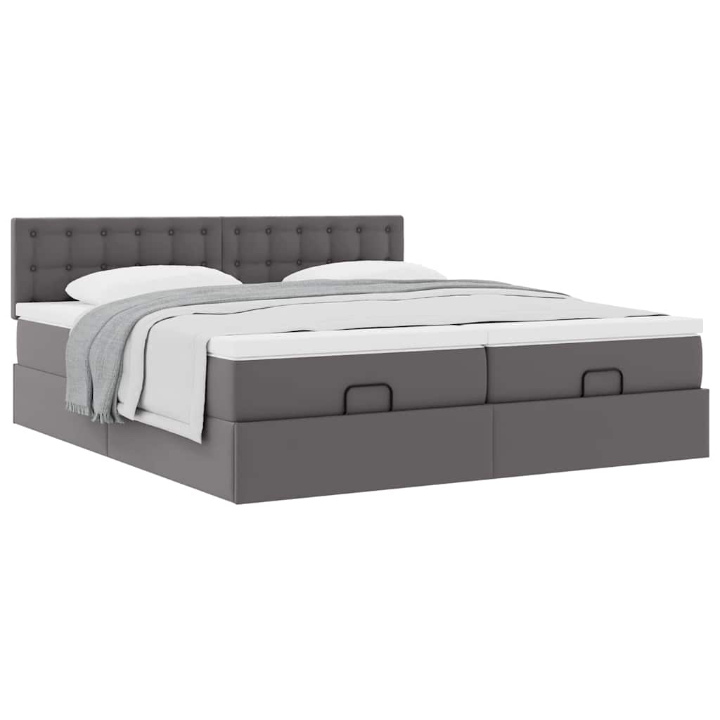 Ottoman-Bett mit Matratzen Grau 160x200 cm Kunstleder