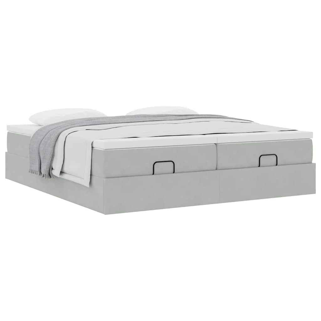 Ottoman-Bett mit Matratzen Hellgrau 200x200 cm Samt