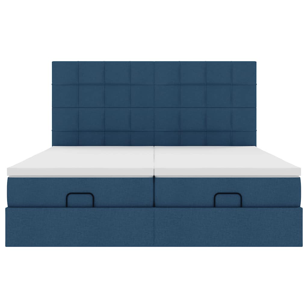 Ottoman-Bett mit Matratzen & LEDs Blau 200x200 cm Stoff