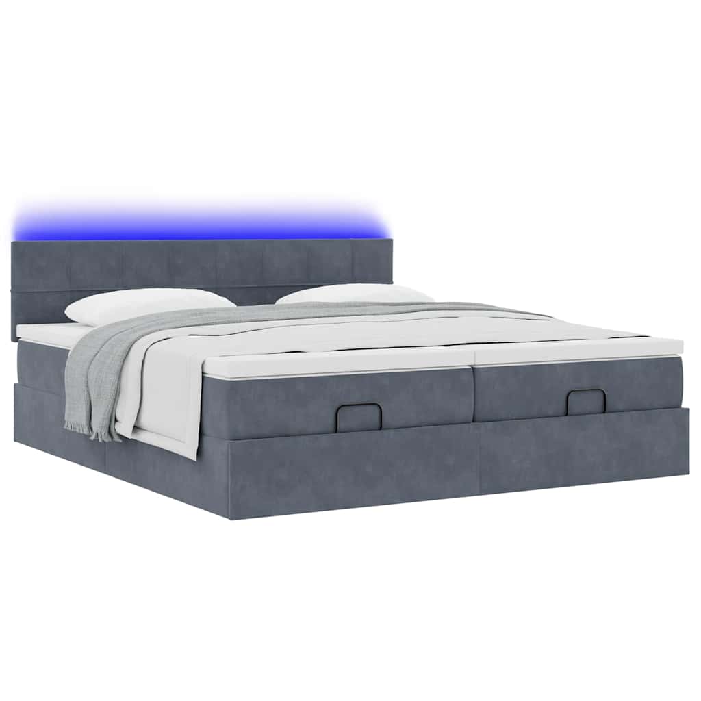 Ottoman-Bett mit Matratzen & LEDs Dunkelgrau 180x200 cm Samt