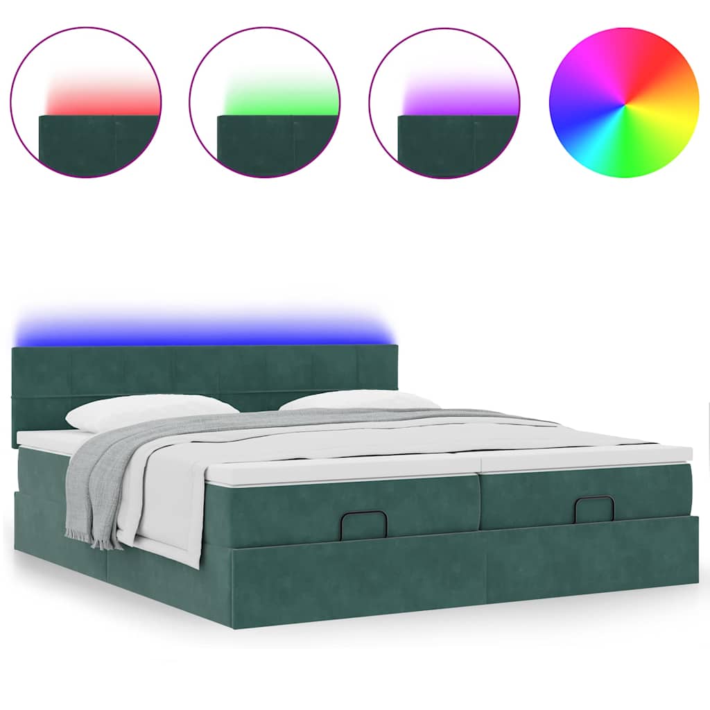 Ottoman-Bett mit Matratzen & LEDs Dunkelgrün 160x200 cm Samt