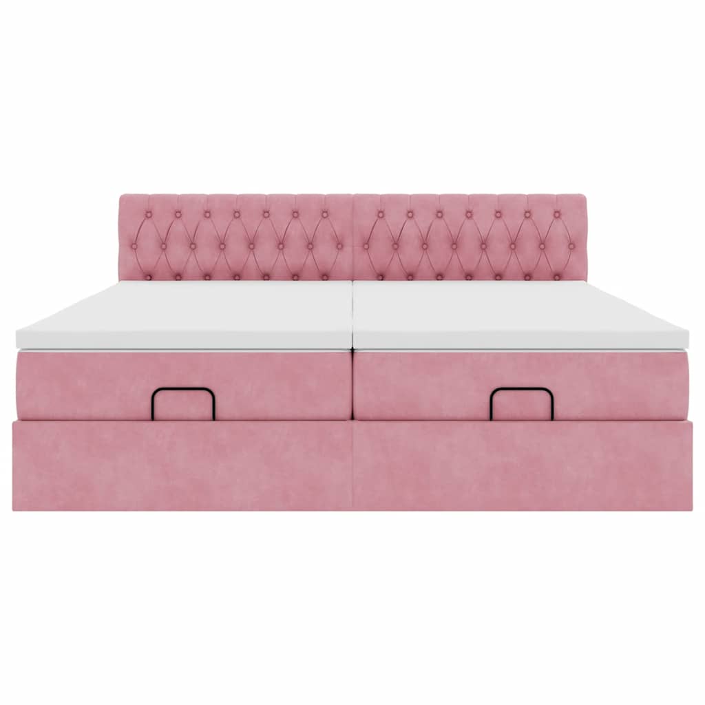 Ottoman-Bett mit Matratzen & LEDs Rosa 180x200 cm Samt