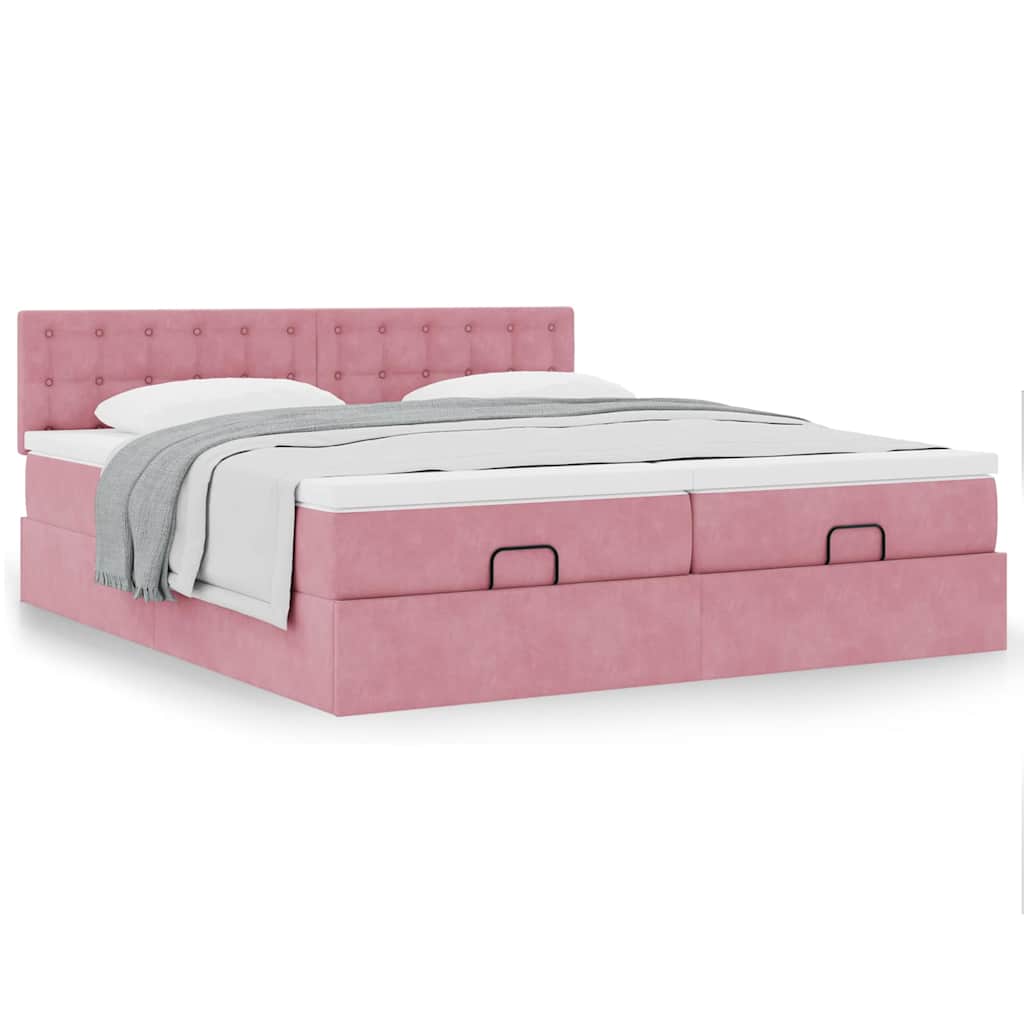 Ottoman-Bett mit Matratzen Rosa 200x200 cm Samt