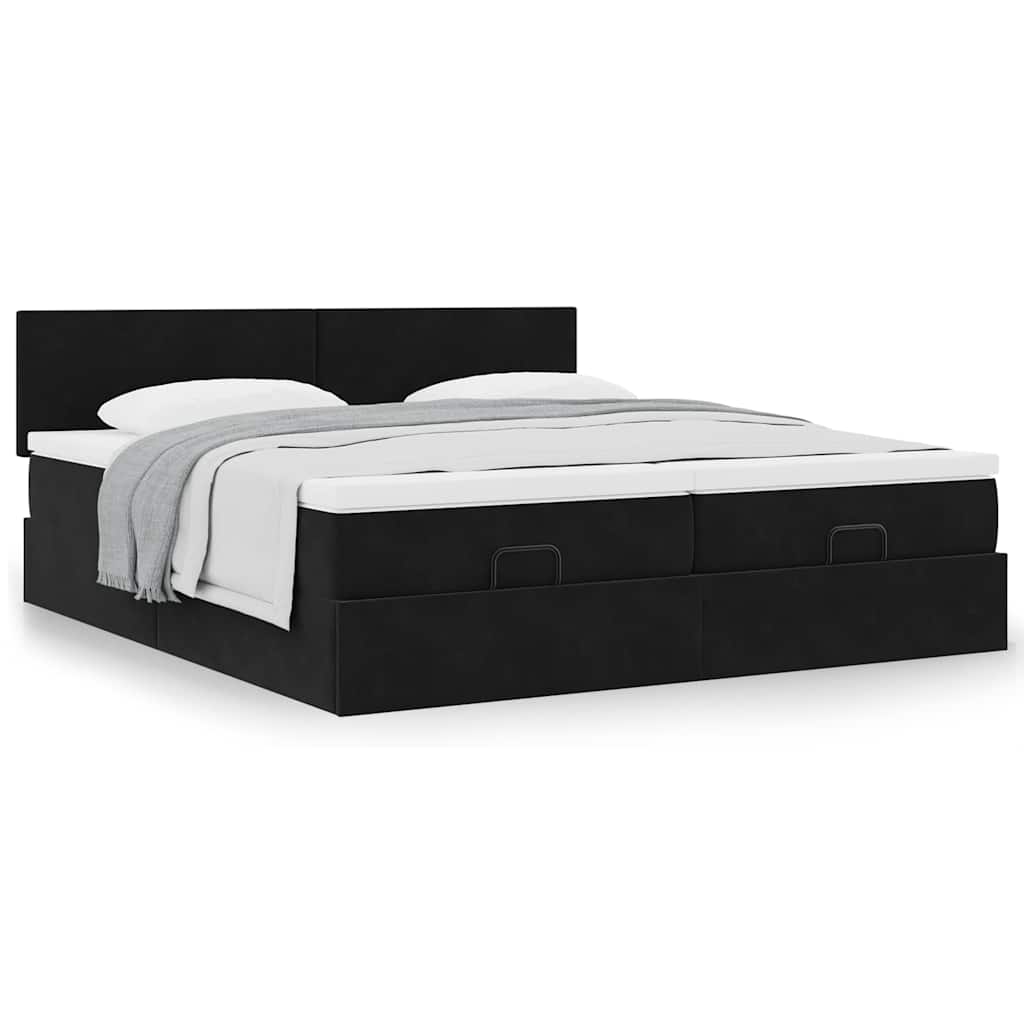 Ottoman-Bett mit Matratzen Schwarz 200x200 cm Samt