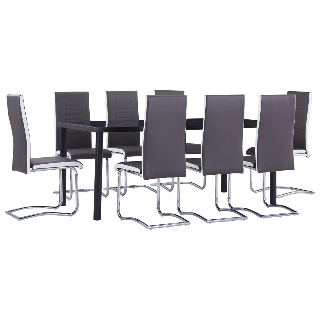 Diese Essgruppe mit ihrem stilvollen und modernen Design fügt sich perfekt in Wohnungen, Essbereiche oder Restaurants ein. Das saubere und moderne Design passt zu jeder Inneneinrichtung. Der Tisch hat eine glatte Tischplatte aus gehärtetem Glas, die mit einem feuchten Tuch leicht zu reinigen ist. Das pulverbeschichtete Metallgestell trägt zu seiner soliden Konstruktion bei und sorgt für große Stabilität und Haltbarkeit. Die Stühle sind mit weichem Kunstleder bezogen und dick gepolstert, um maximalen Komfort zu bieten. Durch sein ergonomisches Design lädt der Esszimmerstuhl zum gemütlichen Sitzen ein. Darüber hinaus sind die Stühle dank des verchromten Stahlrahmens sehr robust und stabil. Diese Essgruppe ist leicht zu montieren. Diese Essgruppe ist ideal für die Ausrichtung eines Festes für Ihre Familie und Freunde. Die Lieferung umfasst einen Tisch und 8 Stühle.