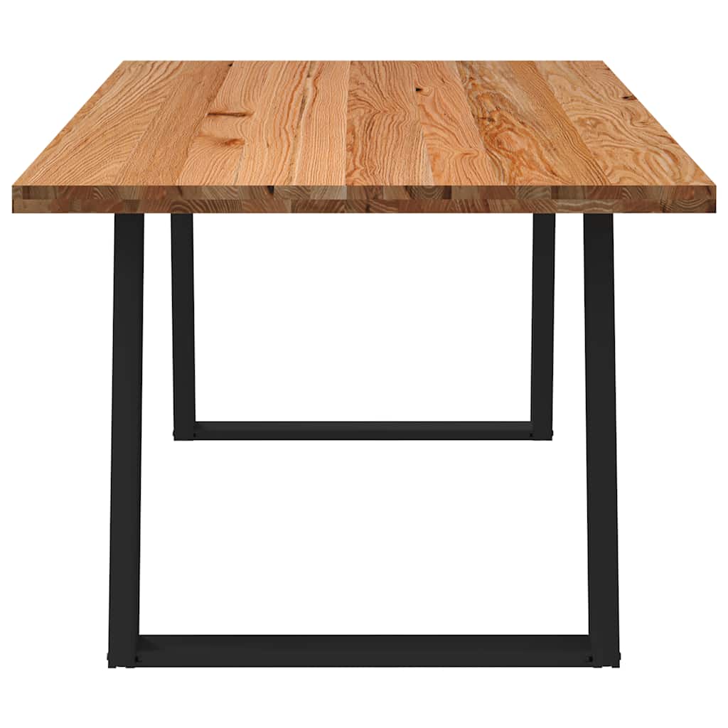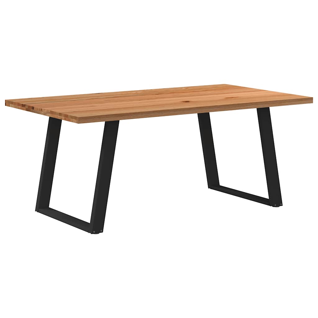 Mach jede Mahlzeit unvergesslich, indem du dich jeden Tag mit deiner Familie oder deinen Freunden um diesen Esstisch aus Holz versammelst! Robustes und langlebiges Material: Massives Eichenholz ist für seine Festigkeit, Haltbarkeit und schöne Maserung bekannt, weshalb es sich hervorragend für haltbare Möbel eignet. Durch seine natürliche Beständigkeit gegen Insektenbefall und Schimmelbildung sehen Eichenmöbel selbst nach jahrelangem Gebrauch brandneu aus.Großer Tisch: Dieser Tisch bietet mit seinen Maßen von 180 x 100 cm viel Platz zum Sitzen und ist das Herzstück deines Essbereichs.Einzigartiger Charme: Da Äste, Risse und Farbabweichungen natürliche Merkmale des Eichenholzes sind, hat jedes Stück dieses Produkts seinen ganz eigenen Charme. Auf den Bildern siehst du Beispiele für die zu erwartenden Variationen.Praktisches Design: Diese Esstischbeine sind mit verstellbaren Nivellierfüßen ausgestattet, die auch auf unebenen Böden für Stabilität sorgen und Bodenkratzer minimieren. Außerdem verfügt die Halterung über vorgebohrte Löcher und mitgelieferte Schrauben, mit denen das Bein an der Tischplatte befestigt werden kann, was die Montage erleichtert.Robustes und stabiles Gestell: Dieser Esszimmertisch hat U-förmige Beine aus pulverbeschichtetem Stahl, die für außergewöhnliche Stabilität und Sicherheit sorgen. Gut zu wissen:Jedes Stück ist ein Unikat, das in Farbe und Maserung variiert. Die Lieferung erfolgt in zufälliger Reihenfolge, wodurch die Exklusivität und Individualität deines Produkts gewährleistet wird.Äste und kleinere Fehler werden mit schwarzem Füllmaterial aufgefüllt, um eine schöne und glatte Tischoberfläche zu erhalten. Beispiele findest du in den Abbildungen.Die Tischplatte ist an den Rändern 4 cm dick, um ein robustes Aussehen zu gewährleisten, und in der Mitte 2 cm dick, um den Holzverbrauch und das Gesamtgewicht zu reduzieren.Bitte bohre die Löcher in der Mitte, nicht an den Rändern der Platte.Bitte achte darauf, die maximale Bohrtiefe von 15 mm nicht zu überschreiten, um die Tischplatte nicht zu beschädigen, da die Plattenstärke 20 mm beträgt.Wir empfehlen, einen Schraubendreher anstelle einer elektrischen Bohrmaschine zu verwenden, um Holzrisse beim Anbringen der Beine zu vermeiden.