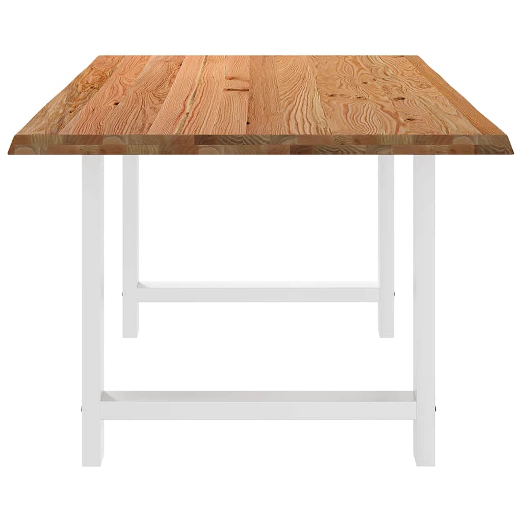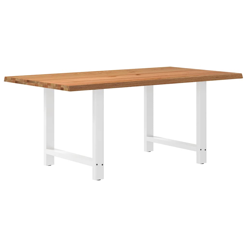 Mach jede Mahlzeit unvergesslich, indem du dich jeden Tag mit deiner Familie oder deinen Freunden um diesen Esstisch aus Holz versammelst! Robustes und langlebiges Material: Massives Eichenholz ist für seine Festigkeit, Haltbarkeit und schöne Maserung bekannt, weshalb es sich hervorragend für haltbare Möbel eignet. Durch seine natürliche Beständigkeit gegen Insektenbefall und Schimmelbildung sehen Eichenmöbel selbst nach jahrelangem Gebrauch brandneu aus.Großer Tisch: Dieser Tisch bietet mit seinen Maßen von 180 x 100 cm viel Platz zum Sitzen und ist das Herzstück deines Essbereichs.Einzigartiger Charme: Da Äste, Risse und Farbabweichungen natürliche Merkmale des Eichenholzes sind, hat jedes Stück dieses Produkts seinen ganz eigenen Charme. Auf den Bildern siehst du Beispiele für die zu erwartenden Variationen.Praktisches Design: Diese Esstischbeine sind mit verstellbaren Nivellierfüßen ausgestattet, die auch auf unebenen Böden für Stabilität sorgen und Bodenkratzer minimieren. Außerdem verfügt die Halterung über vorgebohrte Löcher und mitgelieferte Schrauben, mit denen das Bein an der Tischplatte befestigt werden kann, was die Montage erleichtert.Robustes und stabiles Gestell: Dieser Esszimmertisch hat H-förmige Beine aus pulverbeschichtetem Stahl, die für außergewöhnliche Stabilität und Sicherheit sorgen. Gut zu wissen:Jedes Stück ist ein Unikat, das in Farbe und Maserung variiert. Die Lieferung erfolgt in zufälliger Reihenfolge, wodurch die Exklusivität und Individualität deines Produkts gewährleistet wird.Äste und kleinere Fehler werden mit schwarzem Füllmaterial aufgefüllt, um eine schöne und glatte Tischoberfläche zu erhalten. Beispiele findest du in den Abbildungen.Die Tischplatte ist an den Rändern 4 cm dick, um ein robustes Aussehen zu gewährleisten, und in der Mitte 2 cm dick, um den Holzverbrauch und das Gesamtgewicht zu reduzieren.Bitte bohre die Löcher in der Mitte, nicht an den Rändern der Platte.Bitte achte darauf, die maximale Bohrtiefe von 15 mm nicht zu überschreiten, um die Tischplatte nicht zu beschädigen, da die Plattenstärke 20 mm beträgt.Wir empfehlen, einen Schraubendreher anstelle einer elektrischen Bohrmaschine zu verwenden, um Holzrisse beim Anbringen der Beine zu vermeiden.