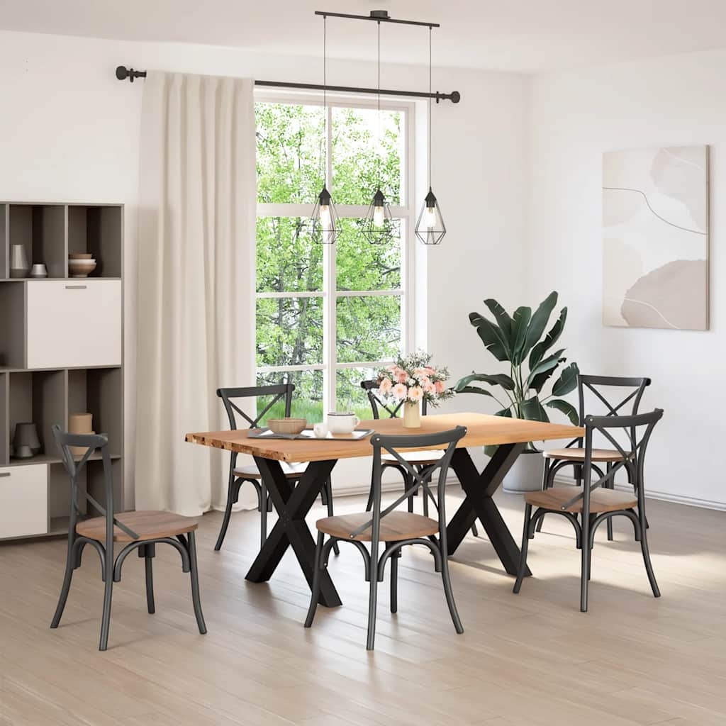 Mach jede Mahlzeit unvergesslich, indem du dich jeden Tag mit deiner Familie oder deinen Freunden um diesen Esstisch aus Holz versammelst! Robustes und langlebiges Material: Massives Eichenholz ist für seine Festigkeit, Haltbarkeit und schöne Maserung bekannt, weshalb es sich hervorragend für haltbare Möbel eignet. Durch seine natürliche Beständigkeit gegen Insektenbefall und Schimmelbildung sehen Eichenmöbel selbst nach jahrelangem Gebrauch brandneu aus.Großer Tisch: Dieser Tisch bietet mit seinen Maßen von 180 x 100 cm viel Platz zum Sitzen und ist das Herzstück deines Essbereichs.Naturkanten: Diese Tischplatte hat geschwungene Kanten, die von der natürlichen Form eines Baumes inspiriert sind und deinem Tisch eine charmante Note verleihen.Einzigartiger Charme: Da Äste, Risse und Farbabweichungen natürliche Merkmale des Eichenholzes sind, hat jedes Stück dieses Produkts seinen ganz eigenen Charme. Auf den Bildern siehst du Beispiele für die zu erwartenden Variationen.Praktisches Design: Diese Esstischbeine sind mit verstellbaren Nivellierfüßen ausgestattet, die auch auf unebenen Böden für Stabilität sorgen und Bodenkratzer minimieren. Außerdem verfügt die Halterung über vorgebohrte Löcher und mitgelieferte Schrauben, mit denen das Bein an der Tischplatte befestigt werden kann, was die Montage erleichtert. Gut zu wissen:Jedes Stück ist ein Unikat, das in Farbe und Maserung variiert. Die Lieferung erfolgt in zufälliger Reihenfolge, wodurch die Exklusivität und Individualität deines Produkts gewährleistet wird.Äste und kleinere Fehler werden mit schwarzem Füllmaterial aufgefüllt, um eine schöne und glatte Tischoberfläche zu erhalten. Beispiele findest du in den Abbildungen.Die Tischplatte ist an den Rändern 4 cm dick, um ein robustes Aussehen zu gewährleisten, und in der Mitte 2 cm dick, um den Holzverbrauch und das Gesamtgewicht zu reduzieren.Bitte bohre die Löcher in der Mitte, nicht an den Rändern der Platte.Bitte achte darauf, die maximale Bohrtiefe von 15 mm nicht zu überschreiten, um die Tischplatte nicht zu beschädigen, da die Plattenstärke 20 mm beträgt.Wir empfehlen, einen Schraubendreher anstelle einer elektrischen Bohrmaschine zu verwenden, um Holzrisse beim Anbringen der Beine zu vermeiden.