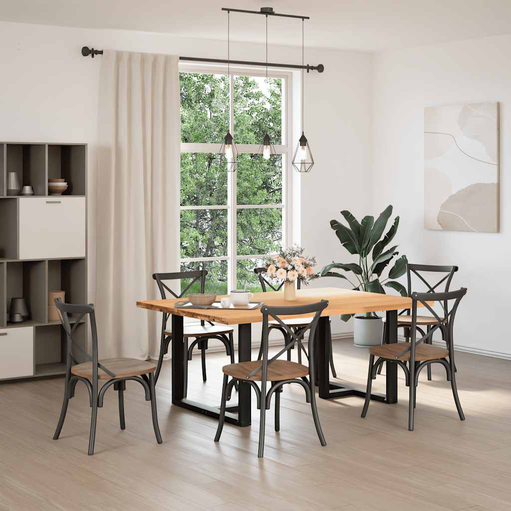 Mach jede Mahlzeit unvergesslich, indem du dich jeden Tag mit deiner Familie oder deinen Freunden um diesen Esstisch aus Holz versammelst! Robustes und langlebiges Material: Massives Eichenholz ist für seine Festigkeit, Haltbarkeit und schöne Maserung bekannt, weshalb es sich hervorragend für haltbare Möbel eignet. Durch seine natürliche Beständigkeit gegen Insektenbefall und Schimmelbildung sehen Eichenmöbel selbst nach jahrelangem Gebrauch brandneu aus.Großer Tisch: Dieser Küchentisch bietet mit seinen Maßen von 180 x 120 cm viel Platz zum Sitzen und ist das Herzstück deines Essbereichs.Einzigartiger Charme: Da Äste, Risse und Farbabweichungen natürliche Merkmale des Eichenholzes sind, hat jedes Stück dieses Produkts seinen ganz eigenen Charme. Auf den Bildern siehst du Beispiele für die zu erwartenden Variationen.Praktisches Design: Diese Esstischbeine sind mit verstellbaren Nivellierfüßen ausgestattet, die auch auf unebenen Böden für Stabilität sorgen und Bodenkratzer minimieren. Außerdem verfügt die Halterung über vorgebohrte Löcher und mitgelieferte Schrauben, mit denen das Bein an der Tischplatte befestigt werden kann, was die Montage erleichtert. Gut zu wissen:Jedes Stück ist ein Unikat, das in Farbe und Maserung variiert. Die Lieferung erfolgt in zufälliger Reihenfolge, wodurch die Exklusivität und Individualität deines Produkts gewährleistet wird.Äste und kleinere Fehler werden mit schwarzem Füllmaterial aufgefüllt, um eine schöne und glatte Tischoberfläche zu erhalten. Beispiele findest du in den Abbildungen.Die Tischplatte ist an den Rändern 4 cm dick, um ein robustes Aussehen zu gewährleisten, und in der Mitte 2 cm dick, um den Holzverbrauch und das Gesamtgewicht zu reduzieren.Bitte bohre die Löcher in der Mitte, nicht an den Rändern der Platte.Bitte achte darauf, die maximale Bohrtiefe von 15 mm nicht zu überschreiten, um die Tischplatte nicht zu beschädigen, da die Plattenstärke 20 mm beträgt.Wir empfehlen, einen Schraubendreher anstelle einer elektrischen Bohrmaschine zu verwenden, um Holzrisse beim Anbringen der Beine zu vermeiden.